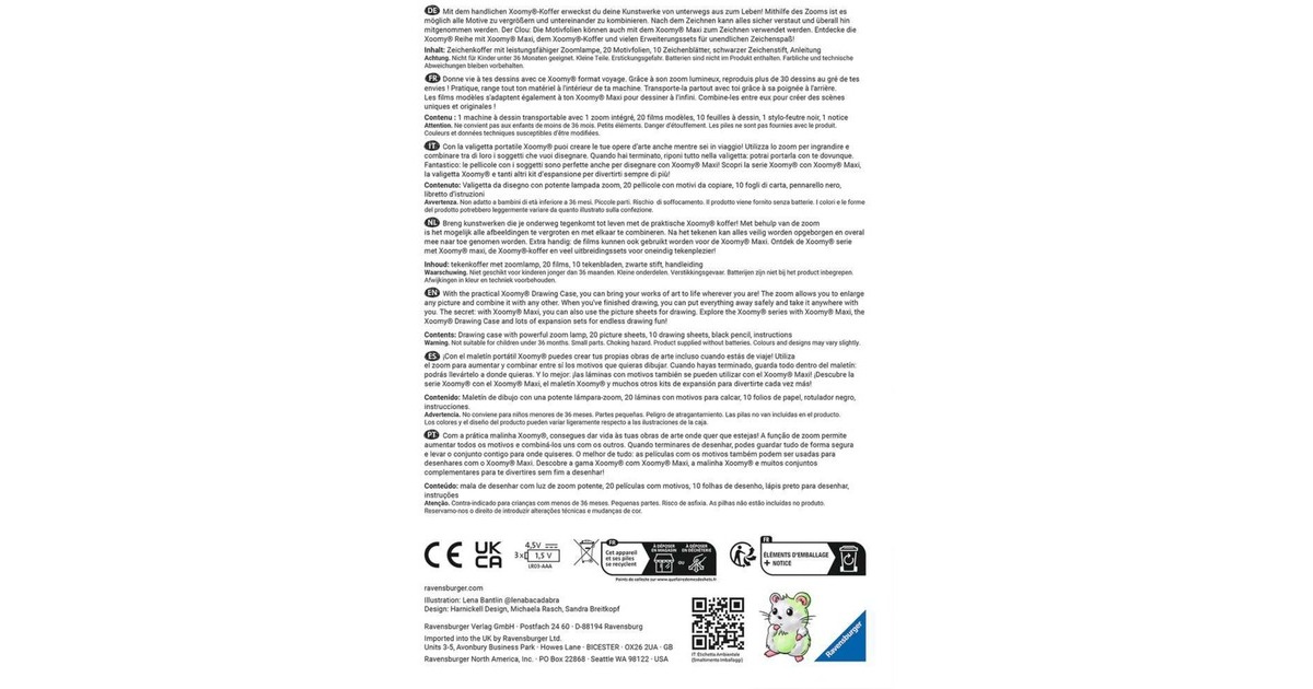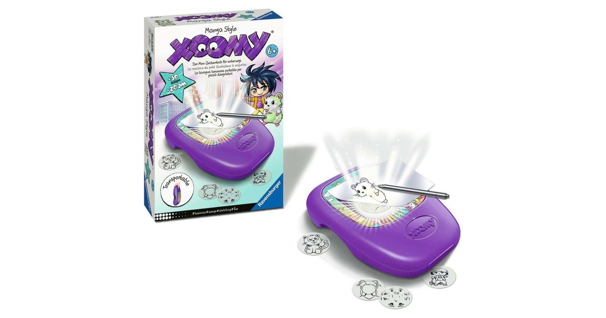 Mit dem Xoomy Midi lernen Kinder ab 6 Jahren ganz einfach zeichnen. Dank des Lichttisches und der LED-Zoomlampe haben Kinder schnell das gewünschte Motiv auf das Papier projiziert. In diesem Set stehen über 30 Motive zur Auswahl. Das gesamte Malset mit Stift, 10 Bogen Papier, 20 Motivfolien und Profi-Zoomlampe kann bei Nichtgebrauch praktisch im Koffer verstaut und mitgenommen werden.Art.-Nr.: 1894789