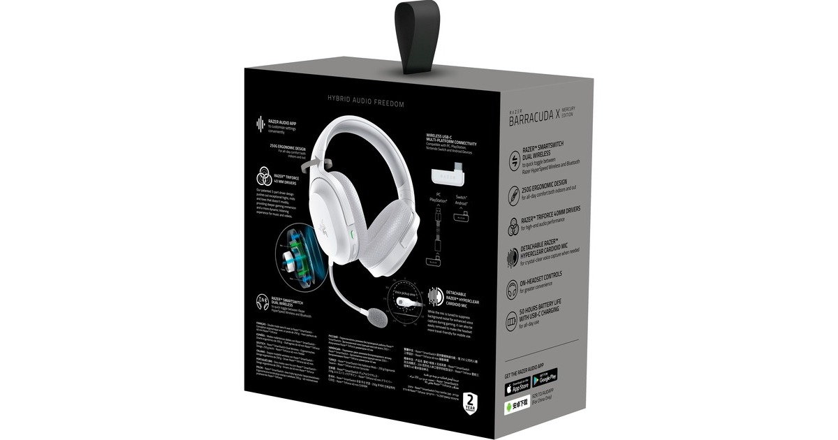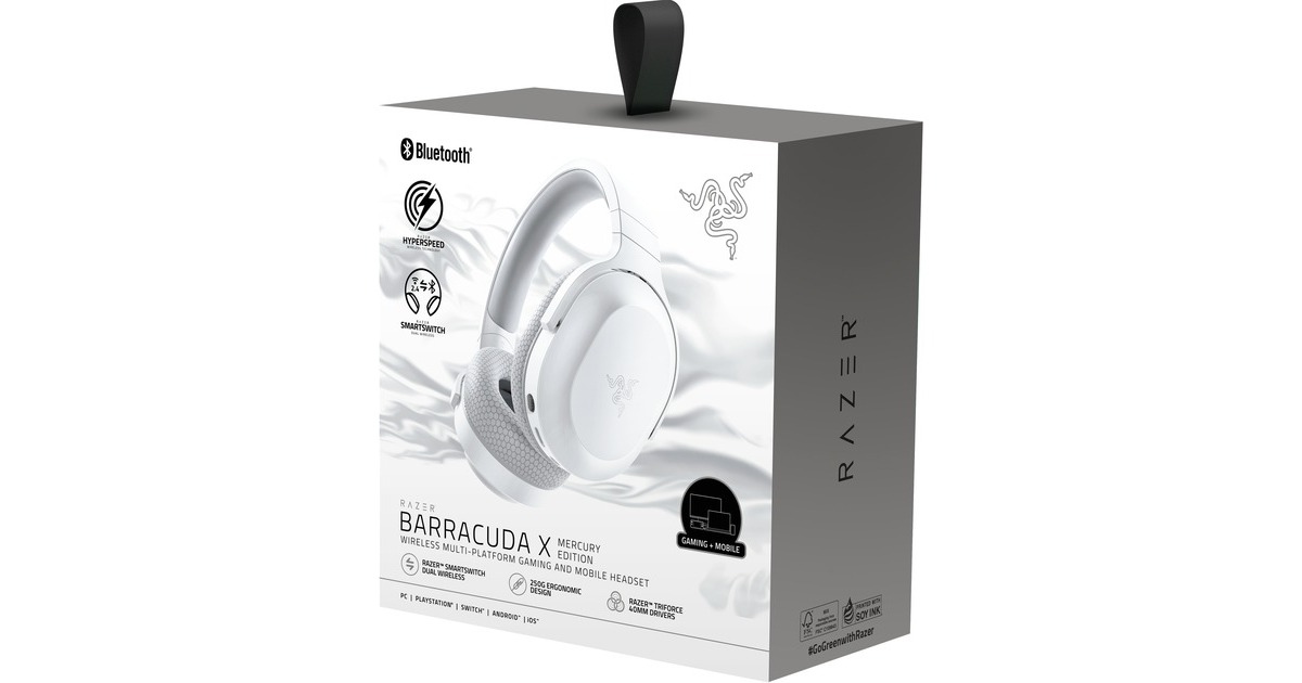 Das Razer Barracuda ist ein besonders leichtes Gaming-Headset, welches bequem via USB-C Dongle oder mittels Bluetooth auf zahlreichen Endgeräten verwendet werden kann. Die 40 mm Razer TriForce Treiber liefern satte Bässe, glasklare Höhen und schaffen so mühelos jede Art von Musik, außerdem können Telefonate oder Teambesprechungen mit dem HyperClear Mikrofon in besonders klarer Qualität geführt werden. Um auch auf den längsten Tag vorbereitet zu sein, hält der Akku mit bis zu 50 Stunden besonders lange.Art.-Nr.: 1841145