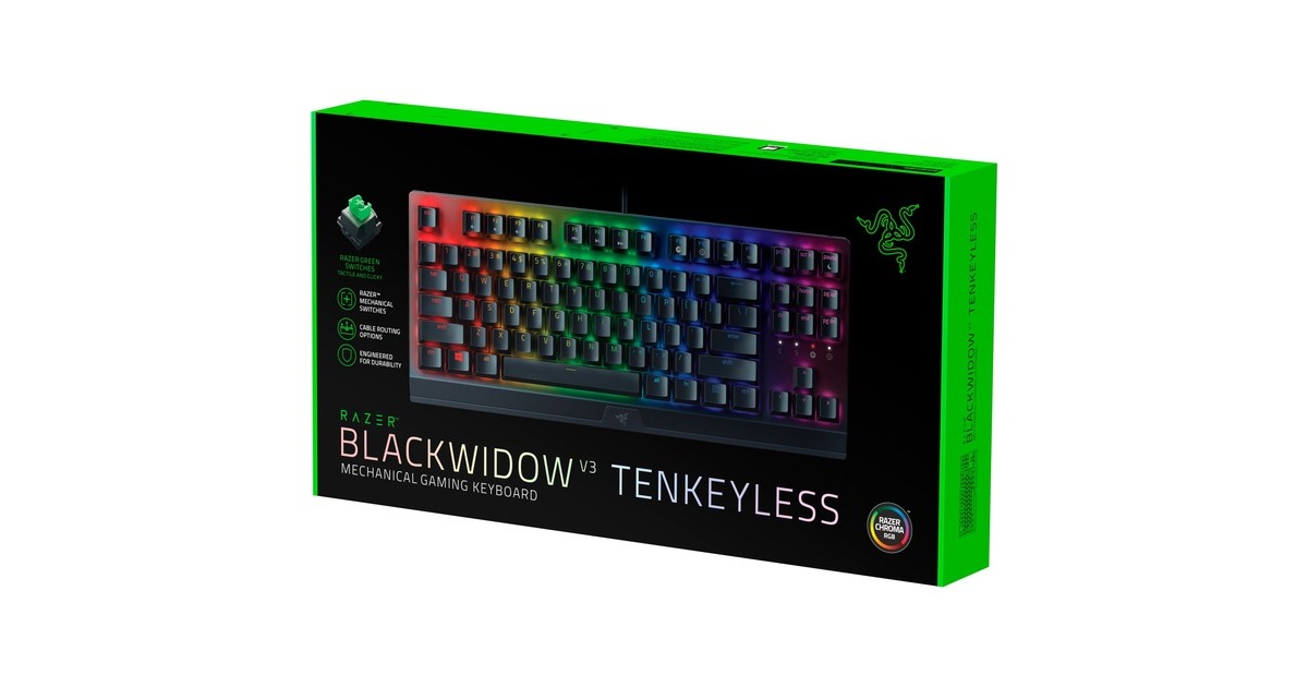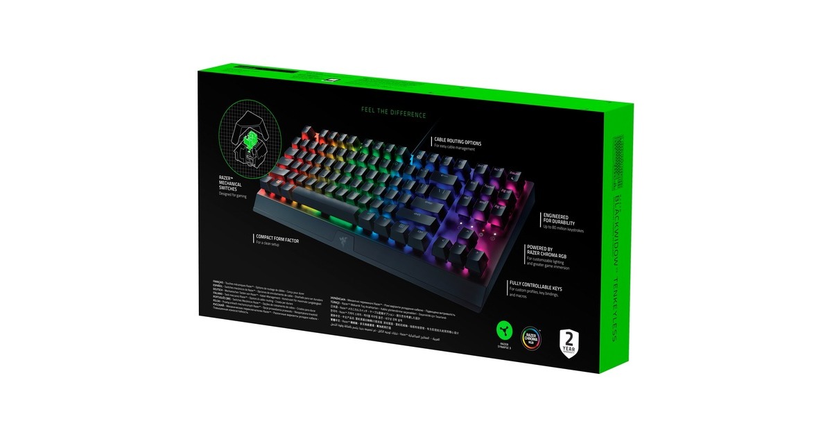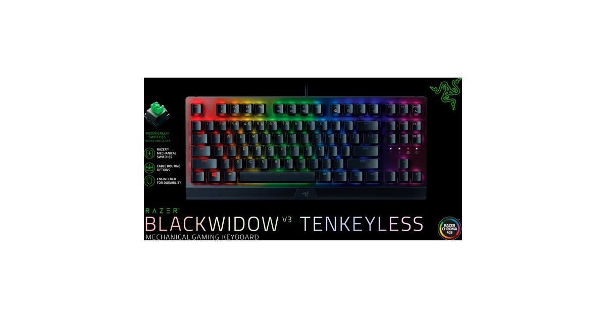 Die Razer Blackwidow V3 Tenkeyless bietet höchste Performance in einem noch schlankeren Format. Mit jedem Tastenanschlag ihrer Razer Green Switches kann man das satte Feedback hören und spüren und das klickende, taktile Design verwöhnt mit optimierter Auslösung und Rückschaltepunkten, die eine noch bessere Performance und mehr Präzision beim Gaming ermöglichen. Passend zu den robusten Tastenkappen ist das Gehäuse dieser mechanischen Gaming-Tastatur ohne Ziffernblock stabil genug für stundenlangen intensiven und regelmäßigen Einsatz und hat ein schlichtes mattes Finish. An der Unterseite der Blackwidow V3 Tenkeyless sind Rillen, in die man ganz leicht das Kabel drücken und in beliebiger Richtung wieder hinaus führen kann, damit der Schreibtisch schön aufgeräumt bleibt. Die Razer Chroma RGB-Beleuchtung sorgt darüber hinaus für den individuellen Style, wie Gamer rund um den Globus es lieben.Art.-Nr.: 1688687