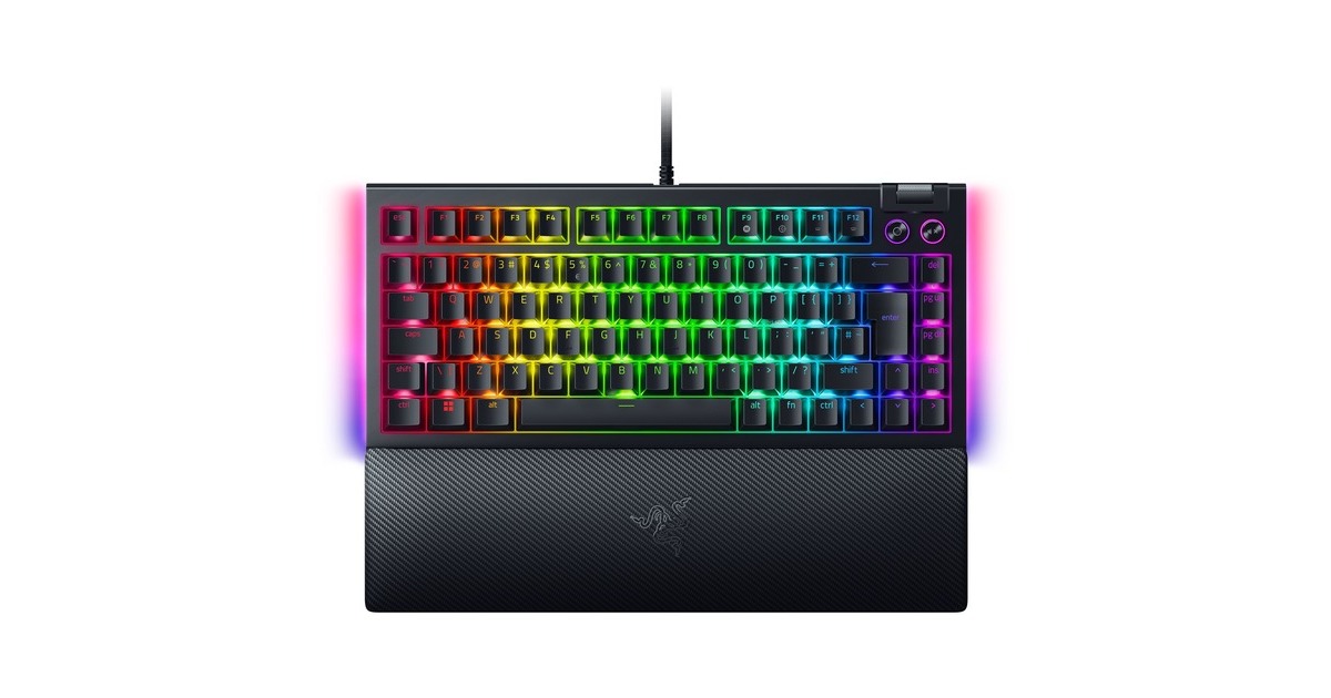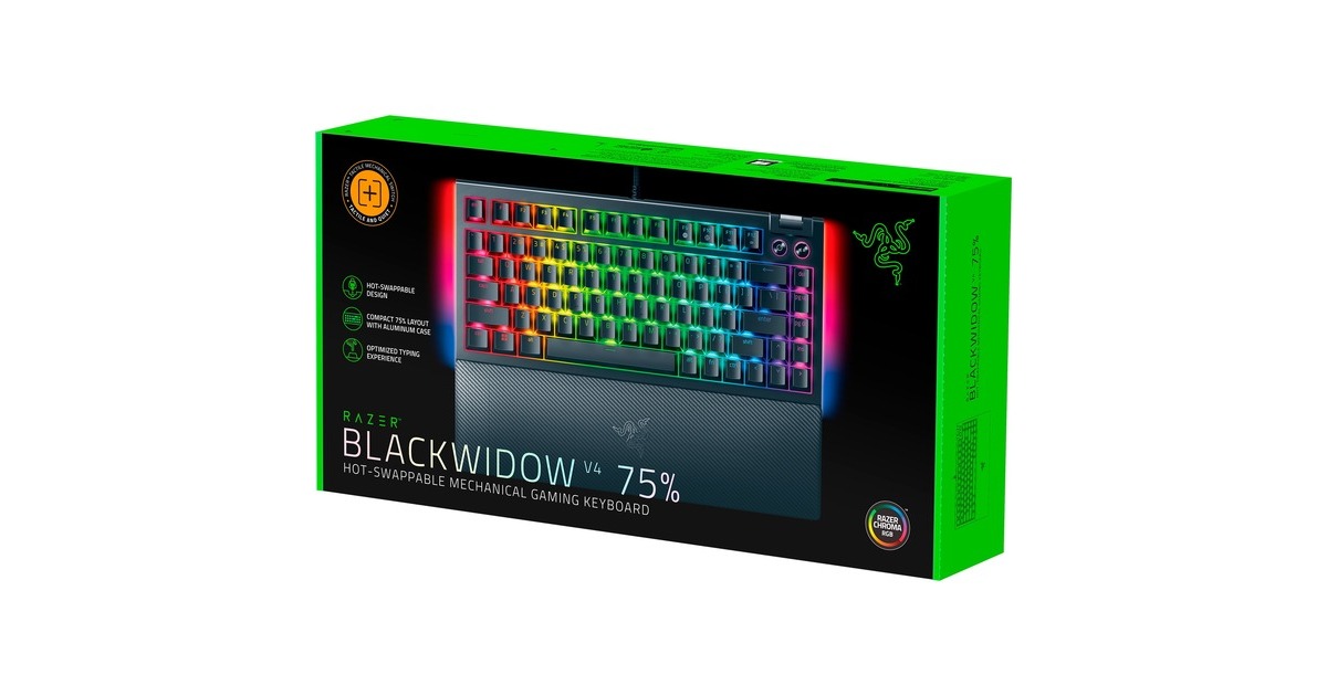 Mit der mechanischen Gaming-Tastatur BlackWidow V4 75% von Razer erlebt man die nächste Phase der Battlestation-Evolution. Mit ihrem robusten, kompakten Design ist die Tastatur ideal für minimalistische Setups, bei denen jeder Quadratzentimeter zählt, und trotzdem hat sie Funktionstasten und Pfeil-Tasten für die wichtigsten Befehle. Ihr eindrucksvoller, zweiseitiger Underglow und die Einzeltastenbeleuchtung wird angetrieben von Razer Chroma RGB und lässt sich mit dem gesamten Setup synchronisieren, um in Hunderten von integrierten Spielen eine bessere Immersion zu genießen. Dabei sorgt die magnetische weiche, gepolsterte Kunstleder-Handgelenkauflage für zusätzlichen Spielkomfort. Die Razer Orange Mechanical Switches der BlackWidow V4 75% ermöglichen eine präzise Ausführung mit klickendem, taktilem Gefühl. Mit einem 2,0-mm-Betätigungspunkt, der nur 50 g Kraft erfordert, erlebt man die perfekte Kombination aus Druck und Reaktionszeit für präzise Eingaben mit zufriedenstellendem, taktilem Feedback. Das Doubleshot-Gussverfahren der ABS-Tastenkappen sorgt dafür, dass sich die Beschriftung nicht abnutzt, und die besonders dicken Wände machen die Tastenkappen extrem widerstandsfähig, damit sie auch intensiver Die Multifunktionswalze sowie zwei Medien-Tasten ermöglichen eine bequeme und umfassende Medien-Steuerung. Darüber hinaus verfügt die BlackWidow V4 75% über einen hybriden On-Board-Speicher für bis zu fünf Profile.Art.-Nr.: 100022329