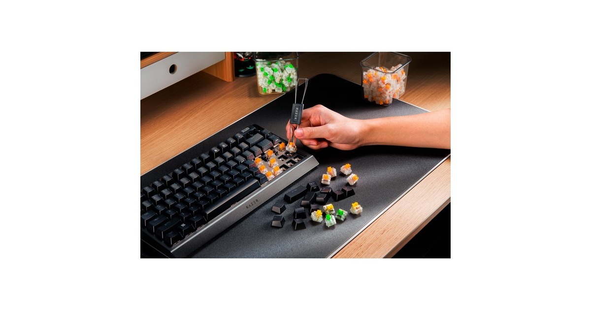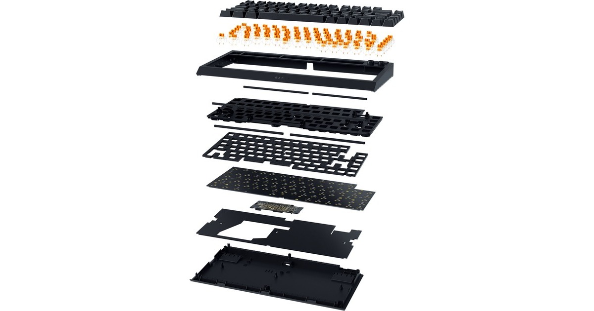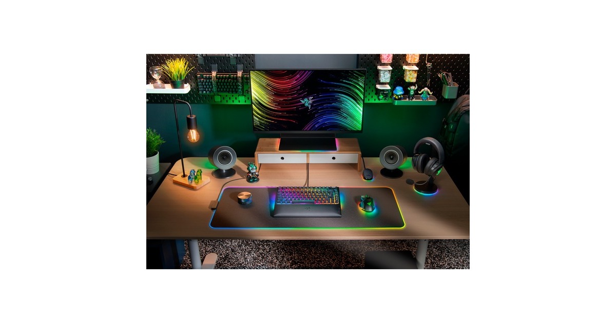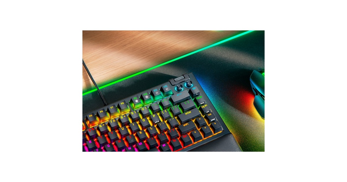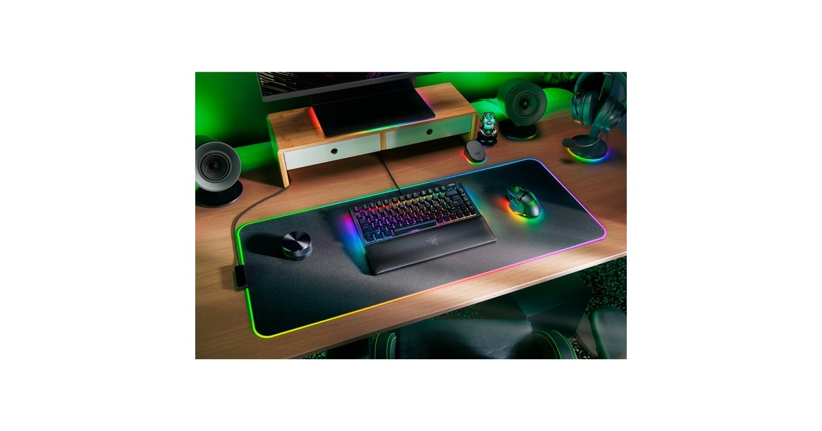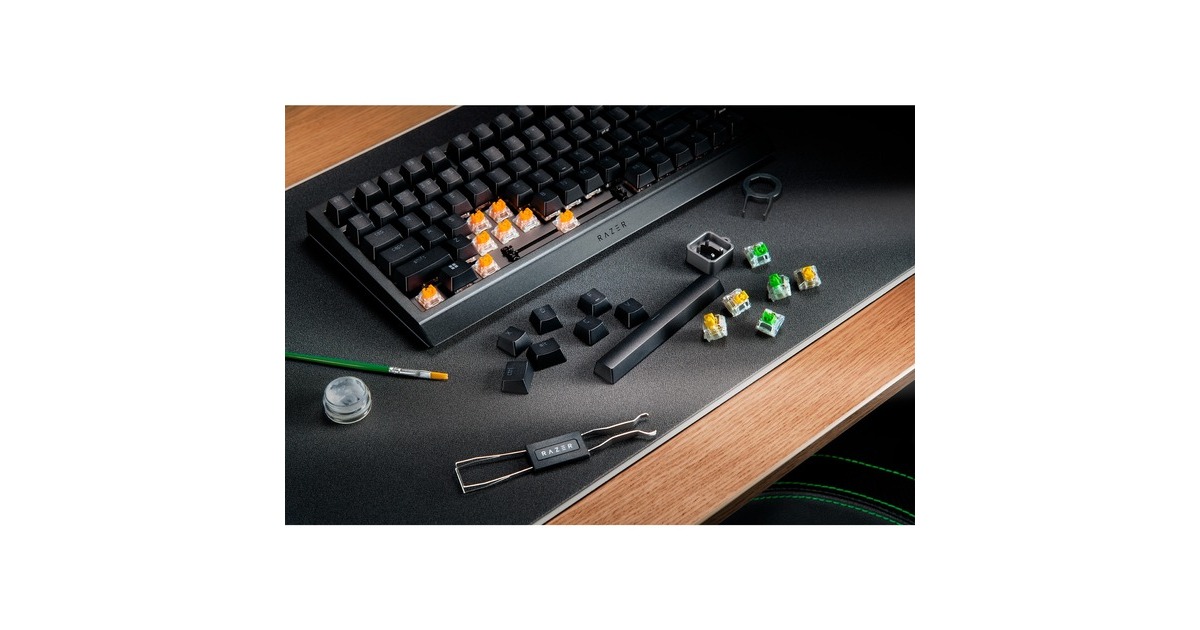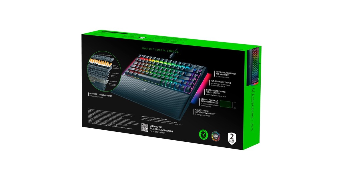 Multifunktionswalze und 2 Medientasten | Doubleshot-ABS-Tastenkappen | 2-seitige Unterbodenbeleuchtung | Magnetische Kunstleder-Handgelenkauflage | Gehäuseoberseite aus 5052-Aluminium-Legierung | Inklusive Schaumstoff für die Platine | Geschmierte Stabilisatoren | Hybrider On-Board-Speicher für bis zu 5 Profile | Razer Chroma RGB |