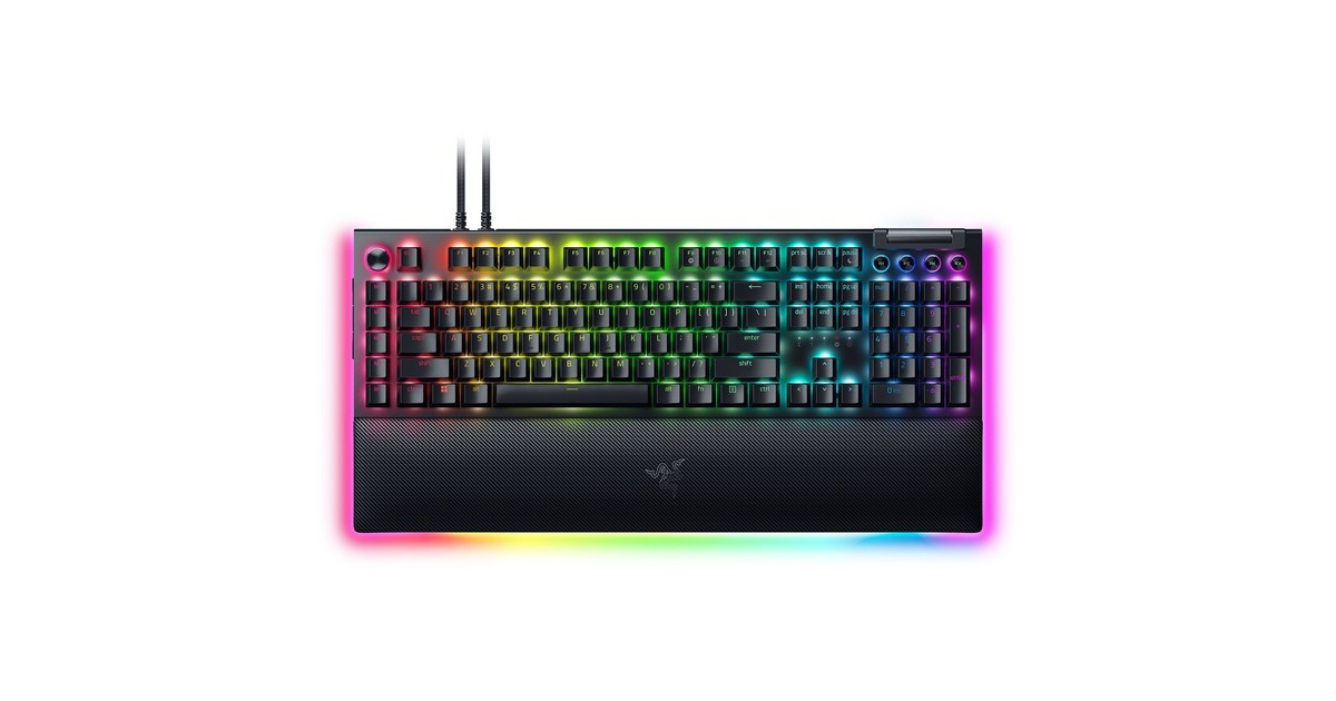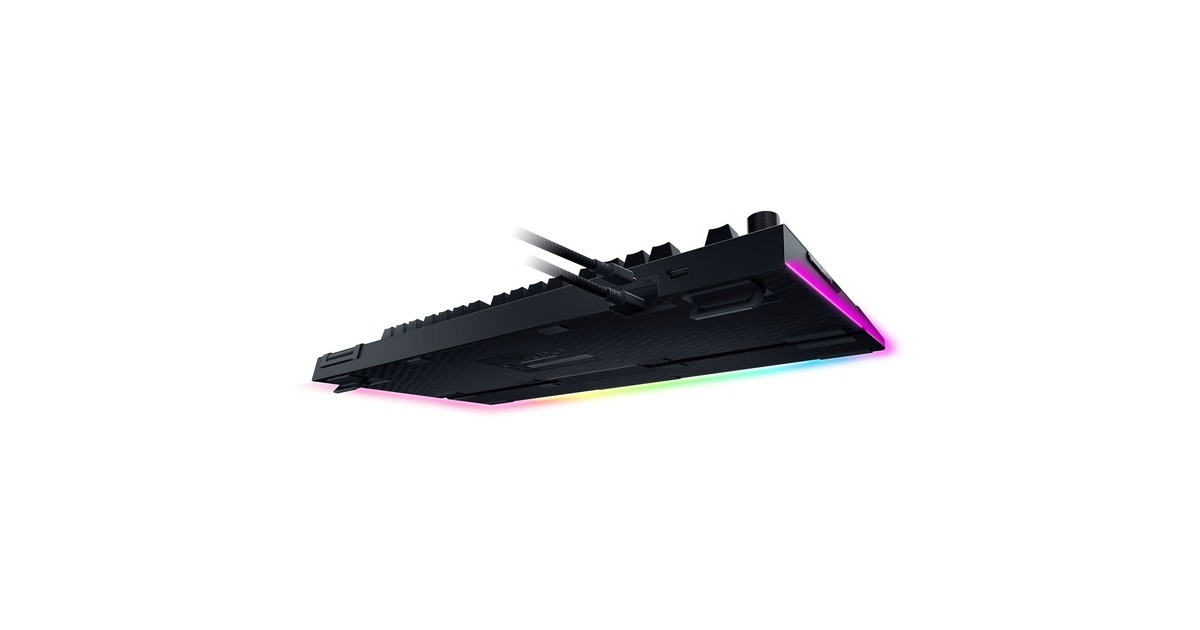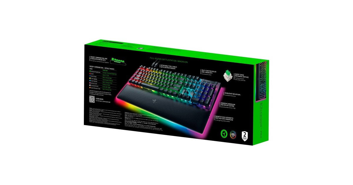 Razer Command Dial und 8 dedizierte Makro-Tasten | Multifunktionswalze und 4 Medientasten | Doubleshot-ABS-Tastenkappen | 2- bzw. 3-seitiges Unterlicht (in Verbindung mit der Handgelenkauflage) | Magnetische Kunstleder-Handgelenkauflage mit Unterlicht | USB-2.0-Passthrough | Inklusive Schaumstoff für Gehäuse und PCB | Geölte Stabilisatoren | Hybrider On-Board-Speicher für bis zu 5 Profile | Razer Chroma RGB |