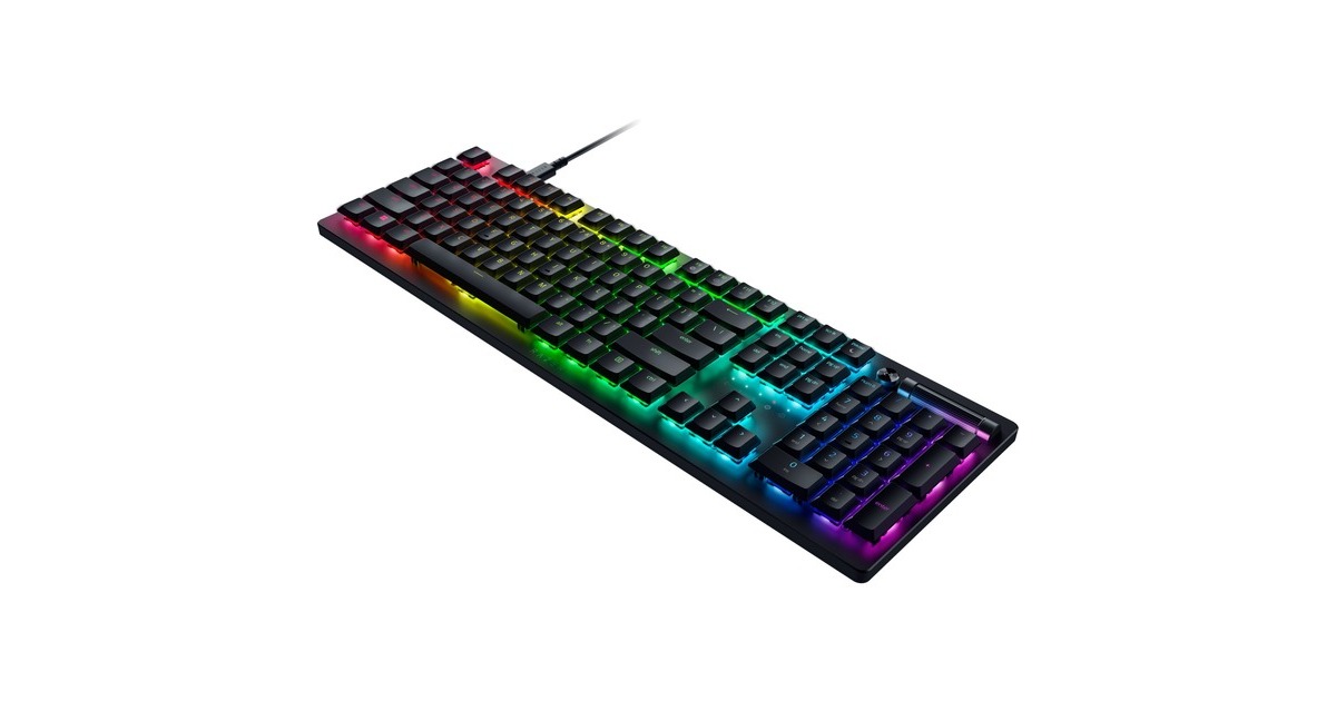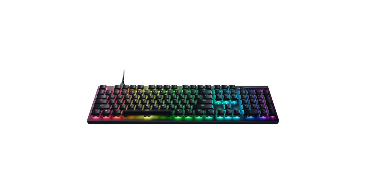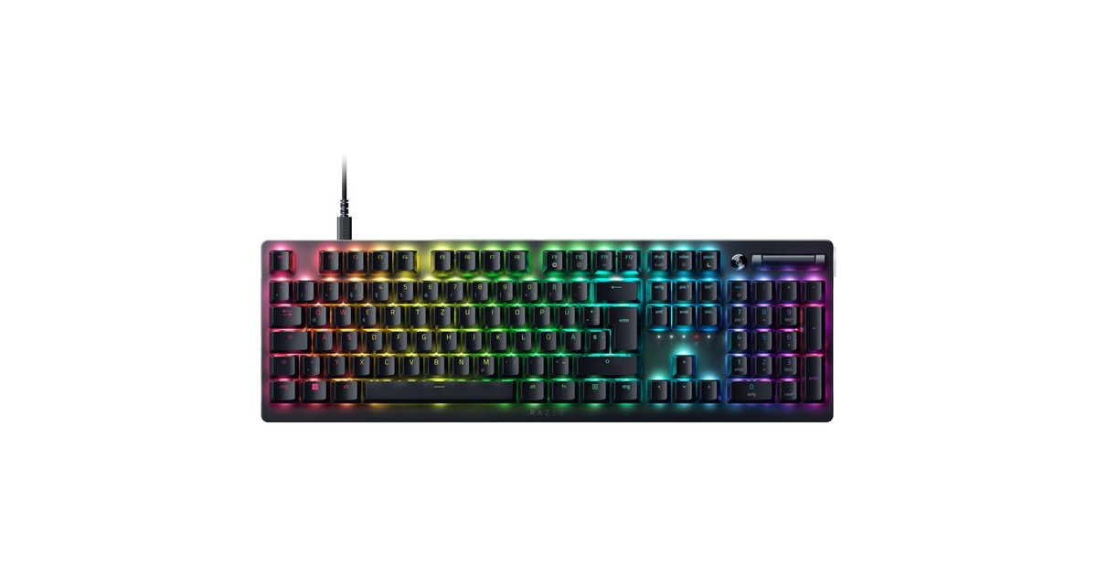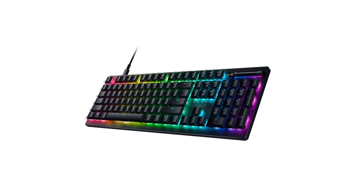 Low-Profile-Tasten, lasergravierte ABS-Tastenkappen, Multifunktionsregler und Medien-Taste, voll programmierbare Tasten mit On-the-fly-Makro-Aufzeichnung, integrierter Hybrid- und Cloud-Speicher mit bis zu 5 Profile, Gaming-Modus, ultra-schlankes Gehäuse mit langlebiger 5052-Aluminium-Deckplatte, Razer Hypershift-Technologie, Razer Chroma RGB |