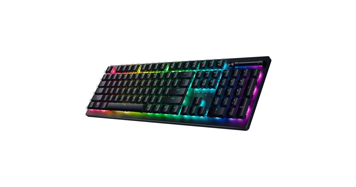 Low-Profile-Tasten, lasergravierte ABS-Tastenkappen, Multifunktionsregler und Medien-Taste, voll programmierbare Tasten mit On-the-fly-Makro-Aufzeichnung, integrierter Hybrid- und Cloud-Speicher mit bis zu 5 Profile, Gaming-Modus, Razer HyperSpeed Wireless und Bluetooth 5.0, 40 Stunden Akkulaufzeit, ultra-schlankes Gehäuse mit langlebiger 5052-Aluminium-Deckplatte, Razer Hypershift-Technologie, Razer Chroma RGB |