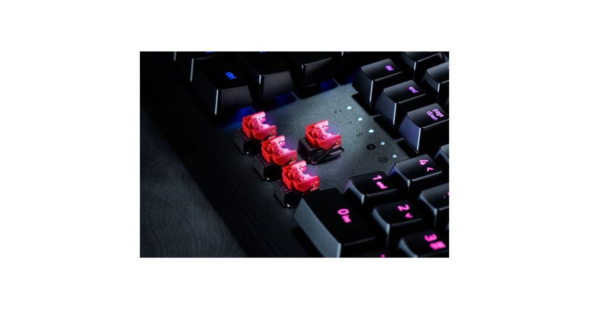 Doubleshot-PBT-Tastenkappen mit vorne aufgedruckten Sekundärfunktionen | Integrierter Hybrid-Speicher mit bis zu 5 Profilen für Tastenzuweisungen | Integrierte Beleuchtungsvoreinstellungen | On-the-fly-Makro-Aufzeichnung |Gaming-Modus-Option | 1.000 Hz Ultrapolling | Aluminium-Konstruktion | Abnehmbares USB-Kabel (Typ C) mit Oberfläche aus geflochtenem Nylon | Razer Chroma RGB | Unterstützt Razer Synapse 3 |