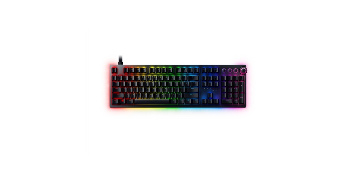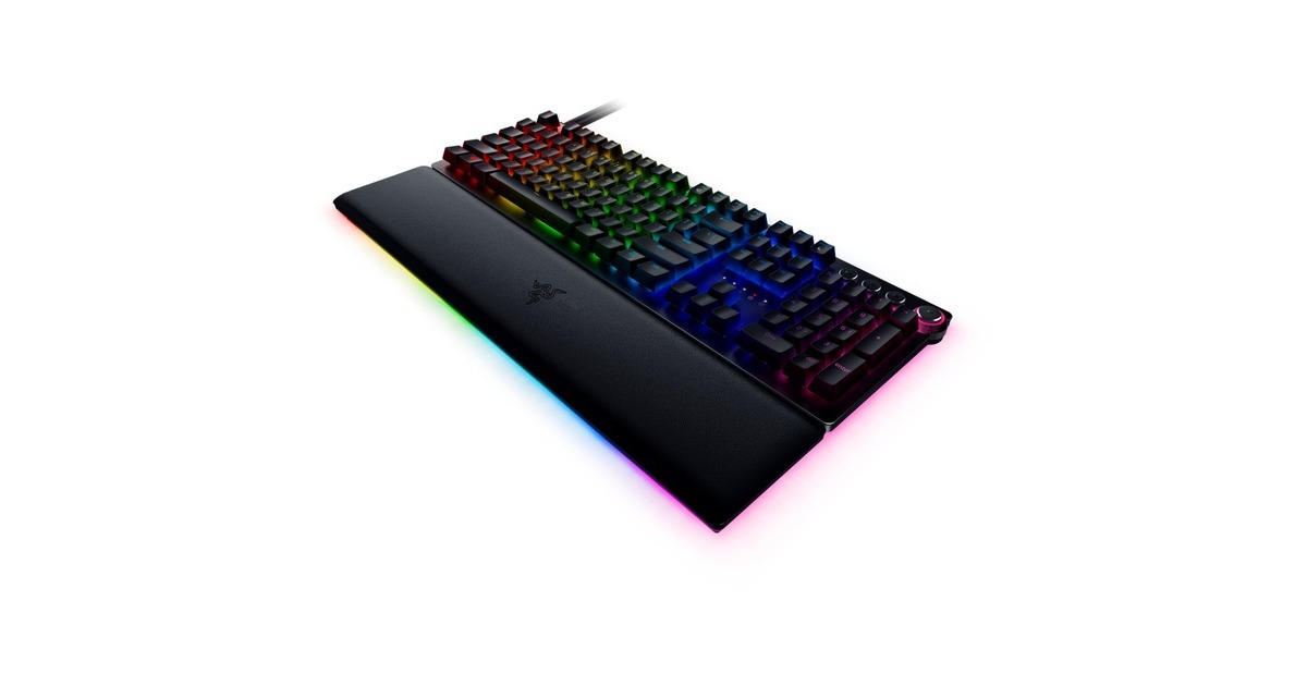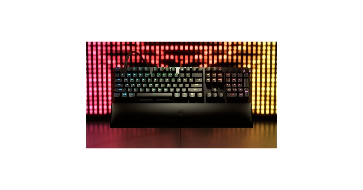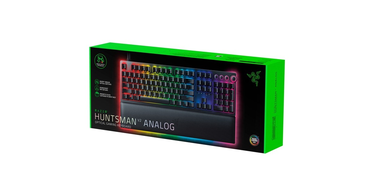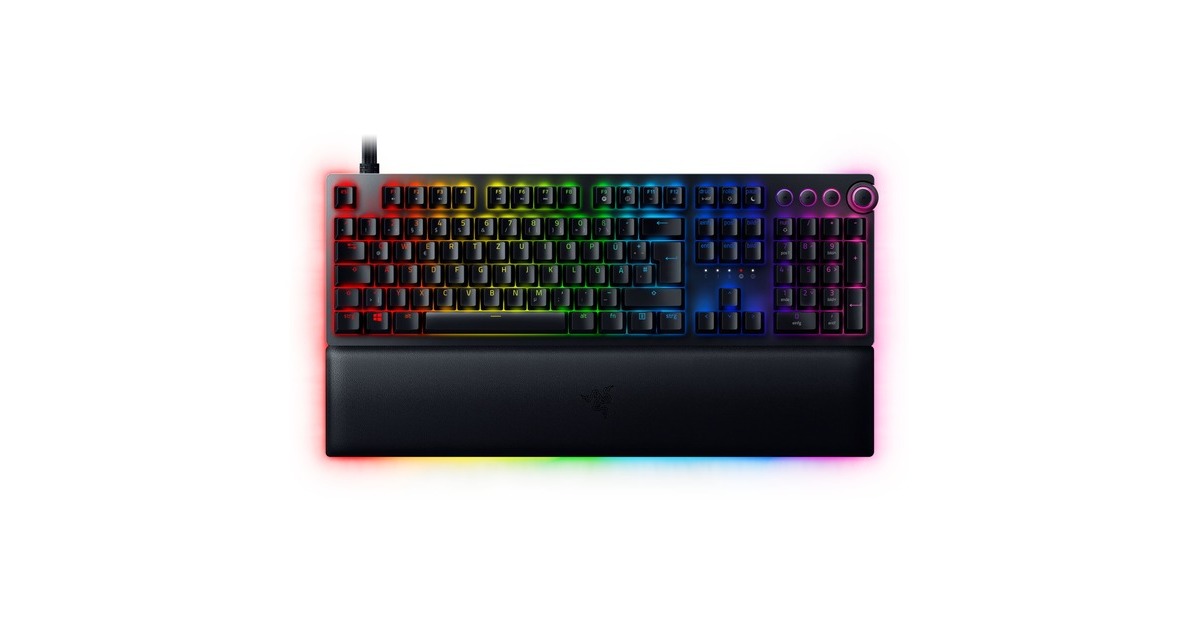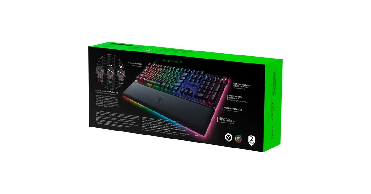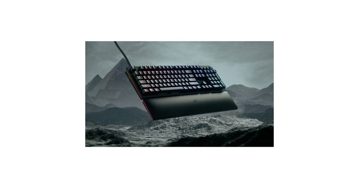 Analoge optische Switches von Razer für Tastenanschläge mit variablen Auslösepunkten | Weich gepolsterte, magnetische Handballenauflage aus Kunstleder mit Razer Chroma RGB-Unterbodenbeleuchtung | Multifunktionaler digitaler Drehregler und 4 Medientasten | Voll programmierbare Tasten mit On-the-fly-Makro-Aufzeichnung | Doubleshot-PBT-Tastenkappen | Gaming-Modus-Option | Matte Aluminium-Abdeckung | Powered by Razer Chroma RGB |