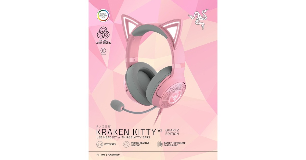 Gaming mit dem Miau-Faktor: Das Kraken Kitty V2 kombiniert überzeugende Technik mit ganz besonderem Stil. Dieses Gaming-Headset verfügt über Razer TriForce 40 mm-Treiber für knackigen Sound und ein biegsames Mikrofon, das ganz auf gute Stimmerkennung optimiert wurde. Das Highlight sind die Katzenohren an der Oberseite des Headsets, die deutlich größer als beim Vorgänger ausfallen. Beim Sprung auf die zweite Version wurde außerdem das Gewicht des Headsets deutlich reduziert. Geblieben ist die anpassbare, reaktive Beleuchtung, die über Razer Chroma gesteuert werden kann.Art.-Nr.: 100008070