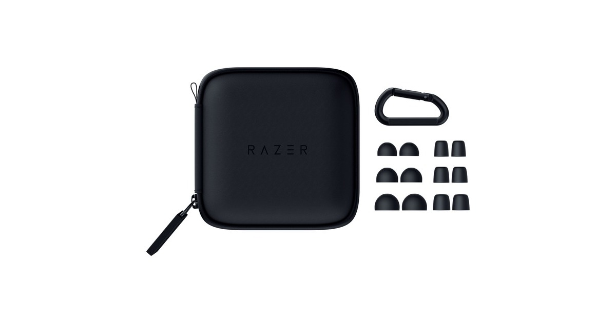 Spritzwassergeschütztes Reißverschluss-Etui aus Kunstleder, Razer Karabinerhaken, Silikon-Ohrstöpsel in 3 verschiedenen Größen (S, M, L), Memory-Schaumstoff-Ohrstöpsel in 3 verschiedenen Größen (S, M, L) |