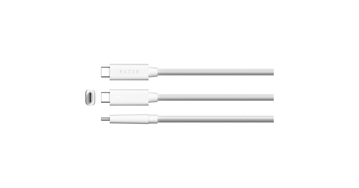 Das 0,8 Meter lange passive Thunderbolt 4 Kabel RC21-01860200-R3M1 von Razer unterstützt die Datenübertragung via Thunderbolt 3, Thunderbolt 4 und USB 4 mit bis zu 40 Gbit/s, USB 3.1 Gen 2 Datenübertragung mit bis zu 10 Gbit/s, DisplayPort Videoausgabe (HBR3), Auflösungen bis 8K und schnelles Aufladen mit bis zu 100 Watt. Das Thunderbolt 4 Kabel in weißem, geflochtenem Design verheddert sich nicht, und eignet sich für Mac-Geräte mit Thunderbolt 3 oder Thunderbolt 4 Anschlüssen mit USB-C Thunderbolt.Art.-Nr.: 1848504