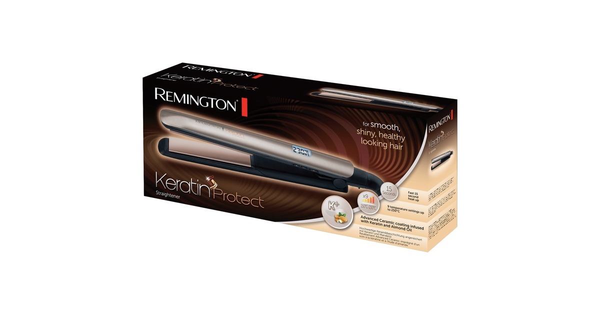 Der Remington Keratin Protect S8540 Haarglätter verfügt über extra lange Stylingplatten (110 mm), die federnd gelagert sind um einen gleichmäßigen Druck auf die Haare ausüben zu können. Die Platten sind mit einer hochwertigen Keramikbeschichtung ausgestattet, die mit Keratin und Mandelöl angereichert ist - für starkes und gesundes Haar. Mit den Bedientasten kann man die Temperatur gut an die eigenen Haare anpassen und aus zehn verschiedenen Temperaturen zwischen 150 und 230 °C wählen. Ein weiteres Highlight ist die "Pro +"-Einstellung. Mit dieser kann die perfekte Temperatur (185 °C) für ein schonendes Styling eingestellt werden. In nur 15 Sekunden ist der Keratin Protect S8540 aufgeheizt und kann zum Glätten benutzt werden. Um nicht aus Versehen die Temperatur verstellen zu können, ist eine Tastensperre integriert. Das Gerät schaltet sich automatisch nach einer Stunde aus, wenn es in dieser Zeit nicht verwendet wird. Die Transportverriegelung sorgt zusätzlich dafür, dass sich das Gerät nicht während des Transports einfach aufklappt.Art.-Nr.: 1430935