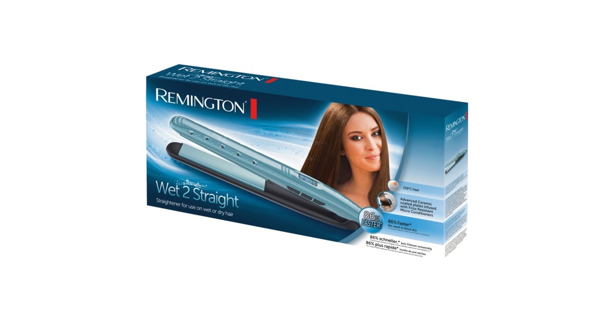 Der Wet2Straight S7300 Haarglätter von Remington ist für die Anwendung auf feuchtem und trockenem Haar geeignet und verfügt über eine hochwertige Keramikbeschichtung angereichert mit hitzeaktivierten Anti-Frizz-Mikrowirkstoffen, die das Haar vor Frizz schützen. Die schmalen, 110 cm langen und federnd gelagerten Stylingplatten sorgen für einen gleichmäßigen Druck auf das Haar. Ausgestattet mit einem digitalen Display mit 10 Temperatureinstellungen von 140 bis 230 °C, 15 Sekunden Aufheizzeit und einer Temperatur-Boost-Funktion, die eine schnelle Einstellung der Höchsttemperatur ermöglicht, lässt der Haarglätter keine Wünsche beim Styling offen. Zur maximalen Sicherheit schaltet der Haarglätter nach 60 Minuten automatisch ab und für zusätzlichen Komfort verhindert die Tastensperre ein unabsichtliches Verstellen der Temperatur. Außerdem machen ihn eine weltweite Spannungsanpassung und eine im Lieferumfang enthaltene hitzebeständige Aufbewahrungstasche zum perfekten Reisebegleiter.Art.-Nr.: 1450872