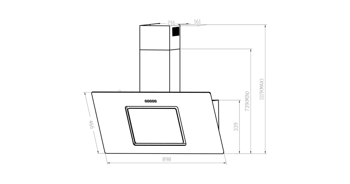 90 cm kopffreie Schräghaube mit Glasschirm |