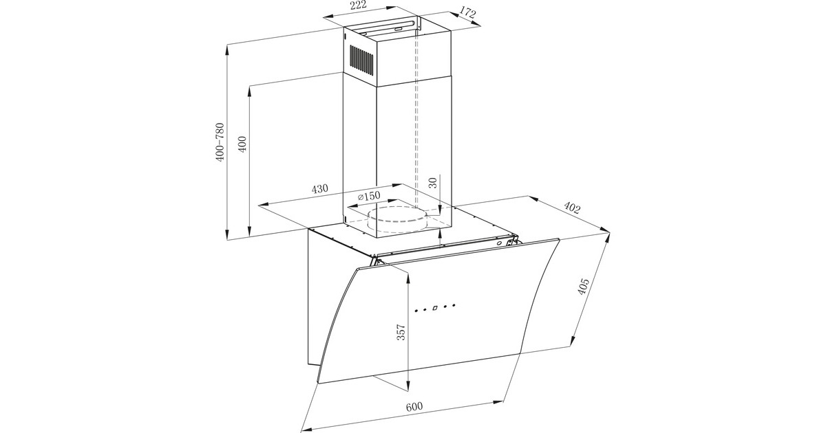 60 cm konkave Schräghaube |