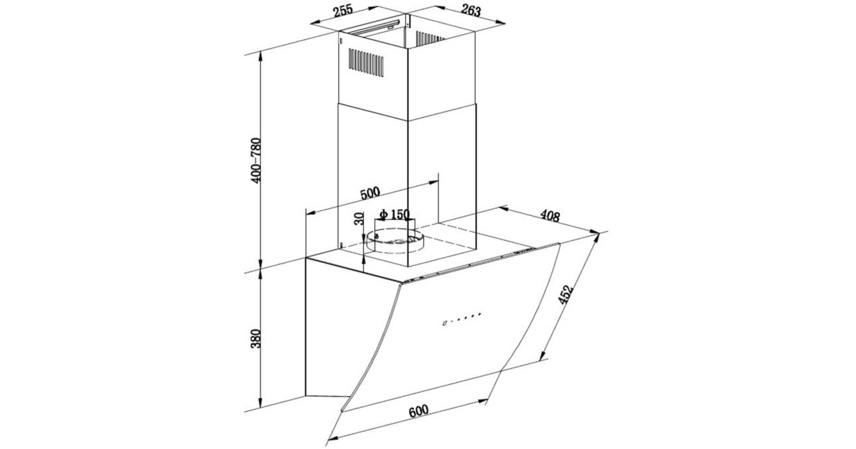 60 cm Wandhaube, mit Glasschirm |