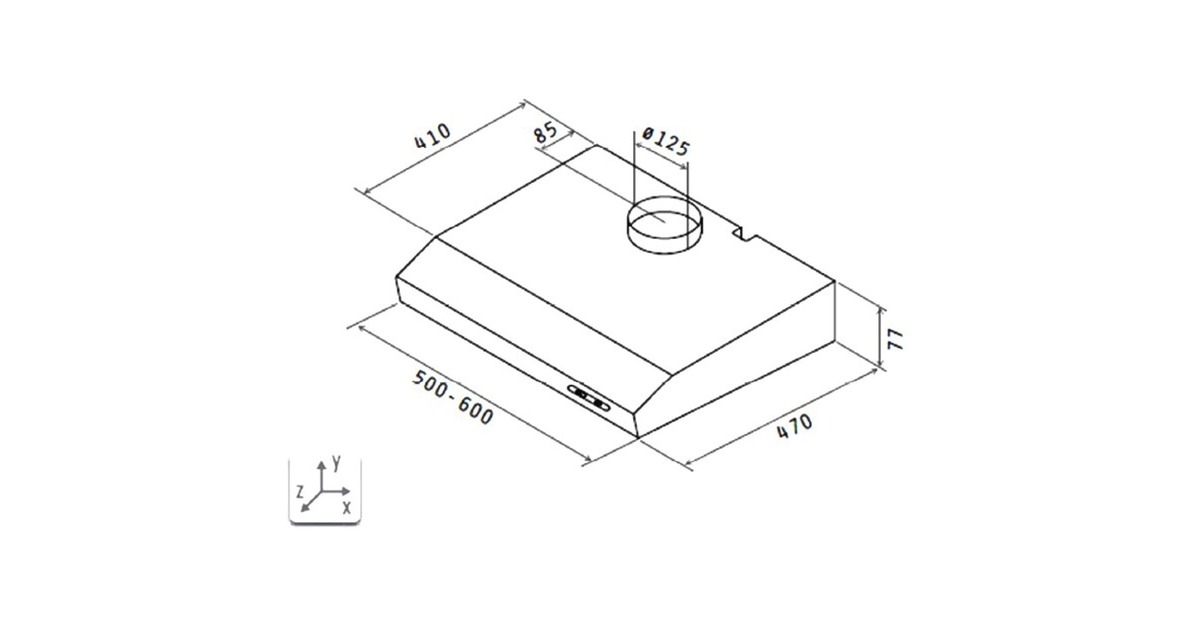 Breite: 600 mm x Höhe: 76 mm x Tiefe/Länge: 470 mm |