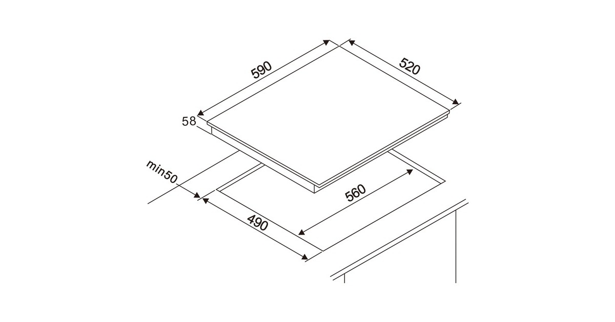 Breite: 590 mm x Höhe: 58 mm x Tiefe/Länge: 520 mm |