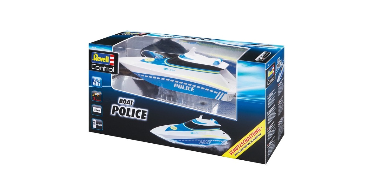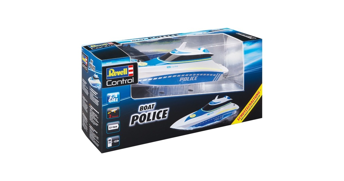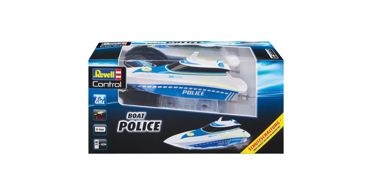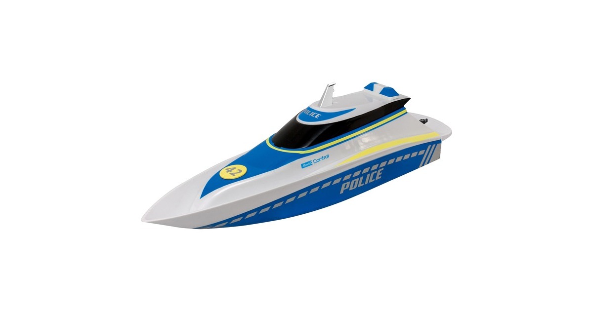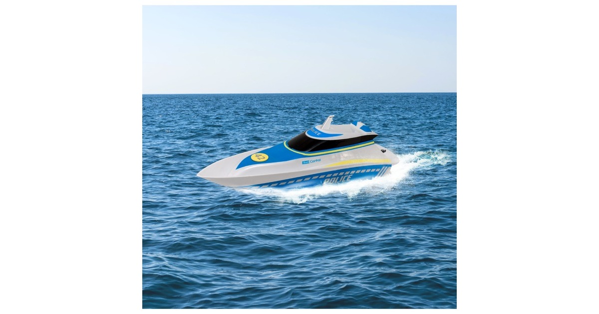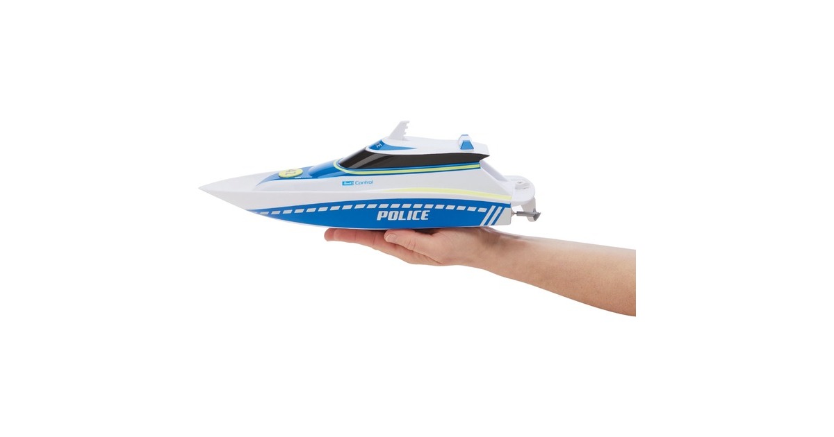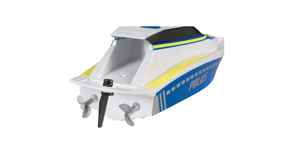 Hier haben Verbrecher keine Chance! Mit dem schnellen und wendigen Polizeiboot kontrolliert man die Gewässer. Zwei Elektromotoren und der integrierte Lithium-Ionen-Akku liefern die nötige Power und eine lange Fahrzeit. Dank des mitgelieferten USB-Ladekabels ist man jederzeit wieder einsatzbereit. Die komplett gekapselte Elektronik ist auch bei wilden Fahrmanövern vor eindringendem Wasser geschützt. Durch die 2,4 GHz-Technologie kann man mit mehreren Freunden gleichzeitig Boote steuern, ohne dass man sich gegenseitig stört. Die enthaltende Schutzschaltung verhindert das Anlaufen der Propeller außerhalb des Wassers. So besteht keine Verletzungsgefahr.Art.-Nr.: 1725527