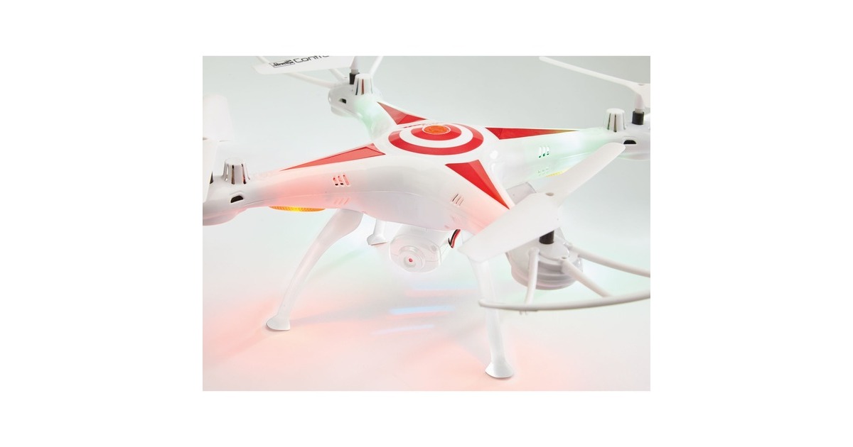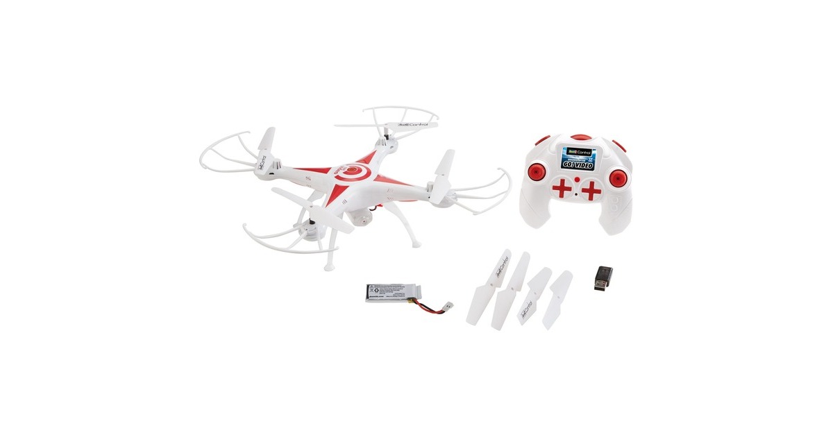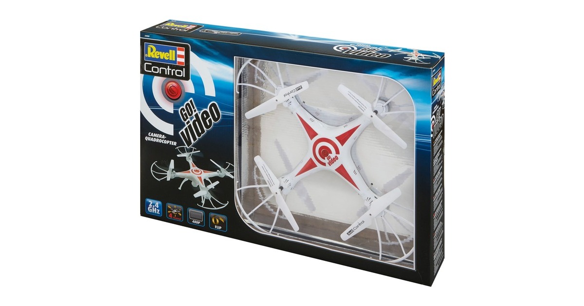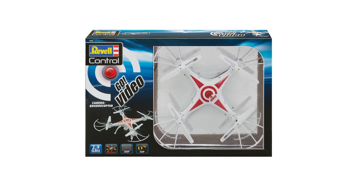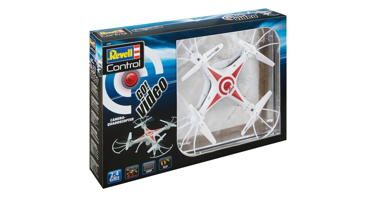 Just GO and make a video! Mit dem robusten Revell Quadrocopter GO! VIDEO und dem modernem 6-Axis-Gyro lässt es sich nicht nur einfach abheben und losfliegen, sondern Videos und Fotos aus der Vogelperspektive gelingen ebenso leicht. Zudem bietet der GO! VIDEO alle Funktionen die heute ein Muss sind: Geschwindigkeitsstufen von bequem bis schnell, Flip-Funktion, Headless-Mode, einen leistungsstarken, wechselbaren Lithium-Polymer-Akku mit USB-Ladegerät sowie und eine präzise 4-Kanal-GHz-Fernsteuerung.Art.-Nr.: 1437212