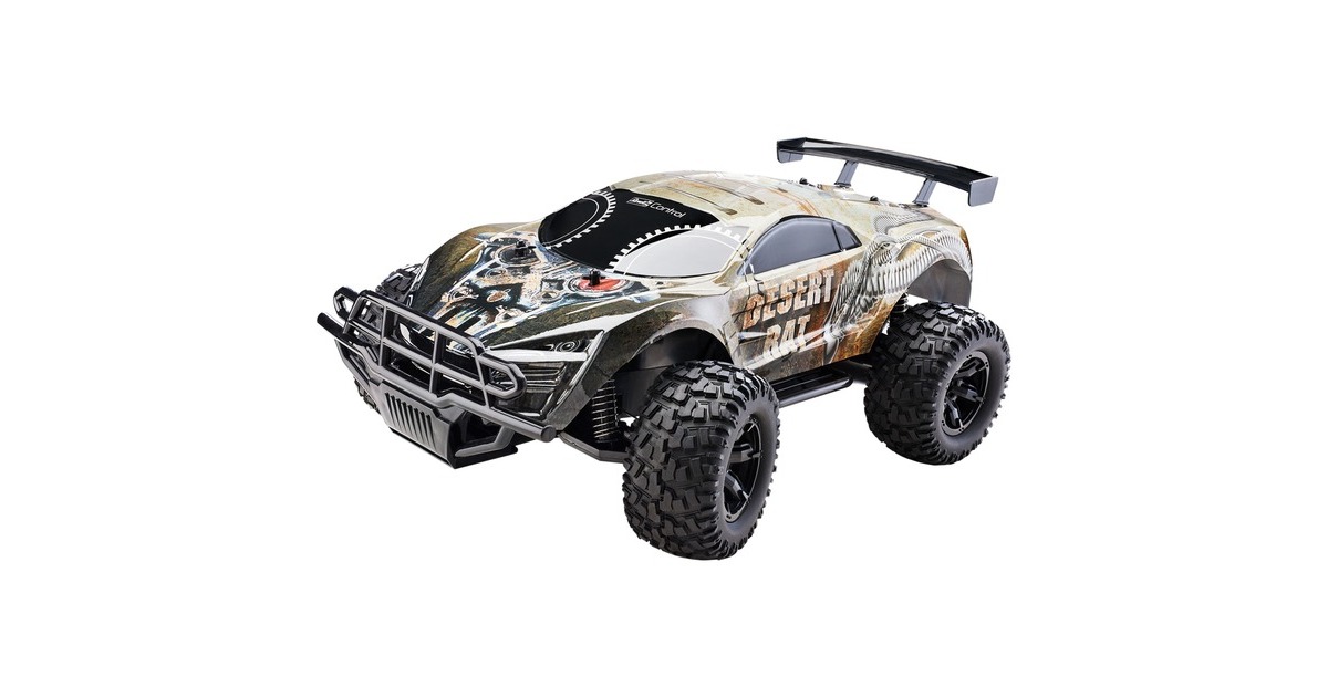 Das RC Car "Desert Rat" erreicht auf Straße und Offroad-Pisten eine Geschwindigkeit von bis zu 18 km/h. Dabei ist die Karosserie flexibel und robust zugleich - die weiche Federung sorgt für hohe Performance auch in hartem Gelände. Die Stromversorgung erfolgt über einen Li-Ion-Akku, der per USB aufgeladen wird. Art.-Nr.: 1871997