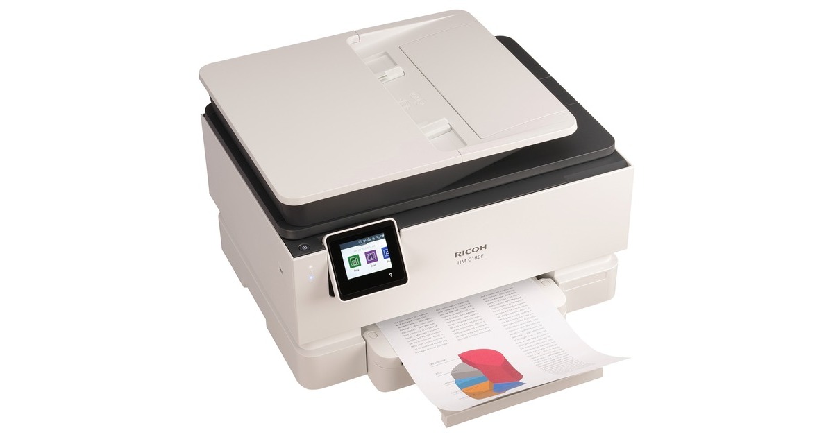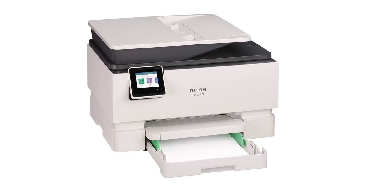 Stilvolles Design, überzeugende Funktionalität: Der IJM C180F von Ricoh ist ein flexibler 4-in-1-Multifunktionsdrucker, der neben einer Tintenstrahl-Druckfunktion auch über einen Kopierer, einen Scanner sowie ein Faxgerät verfügt. Bis zu 22 Seiten pro Minute (ISO) gibt dieses kompakt gebaute Gerät, das über einen Touchscreen an der Vorderseite bedient wird, bei Druck von Schwarzweiß-Dokumenten aus. Darüber hinaus verfügt der IJM C180F über eine automatische Duplexeinheit für einfachen beidseitigen Druck und einen ebenfalls duplexfähigen Papiereinzug an der Oberseite, über den Vorlagen zum Kopieren und Scannen eingegeben werden können. Dabei hat das Gerät Schnittstellen für LAN, WLAN und WiFi direct printing, womit der Direktdruck von Mobilgeräten mit iOS und Android möglich wird.Art.-Nr.: 100014258