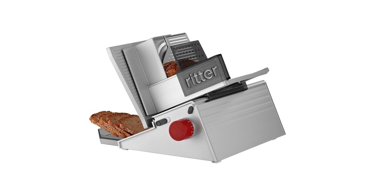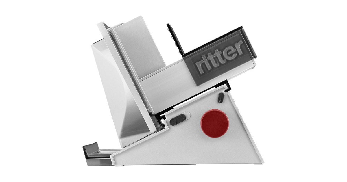 Der schräg gestellte Allesschneider contura³ aus der Serie premium von ritter sorgt für beste Schnittergebnisse, besonders bei dünnen Scheiben. Durch die 25° Schrägstellung der Auflegefläche wird eine optimale Schneideposition ermöglicht. Die Schnittstärke ist von hauchdünn bis ca. 23mm stufenlos präzise einstellbar. Zusätzlich unterstützt der Leichtlaufschlitten den Bedienkomfort. Für häufiges Schneiden von Brot, Wurstwaren, Käse, Gemüse, Obst und mehr sorgt die Vollmetallausführung des Allesschneiders für hohe Stabilität, optimale Schneidergebnisse und eine lange Lebensdauer. Es stehen zwei Betriebsarten zur Auswahl. Für den Kurzbetrieb wird der Schalter gedrückt und bis zum Widerstand vorgeschoben. Das Rundmesser läuft, solange der Schalter in dieser Position gedrückt bleibt. Für den Dauerbetrieb wird der Schalter gedrückt und über den Widerstand hinaus geschoben, bis er einrastet. Das Rundmesser läuft in dieser Betriebsart, ohne dass der Schalter gedrückt bleiben muss, bis der Schalter zurück in die Position "0" geschoben wird. Der Schlitten kann bei Bedarf entriegelt und abgenommen werden. Der Allesschneider contura³ ist mit einem 17cm Ø Wellenschliffmesser ausgestattet. Das Messer kann zur Reinigung durch einen bequemen Bajonettverschluss ohne zusätzliches Werkzeug unkompliziert abgenommen werden.Art.-Nr.: 1834791