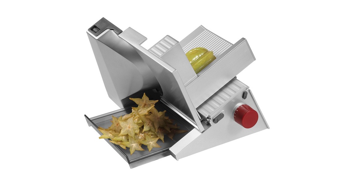 Dauerbetrieb, Momentbetrieb, Schnittstärke stufenlos einstellbar, Schneidgut-Auffangschale, abnehmbarer Schlitten |