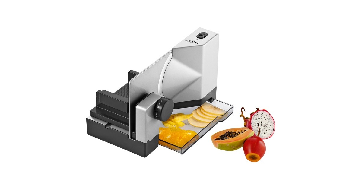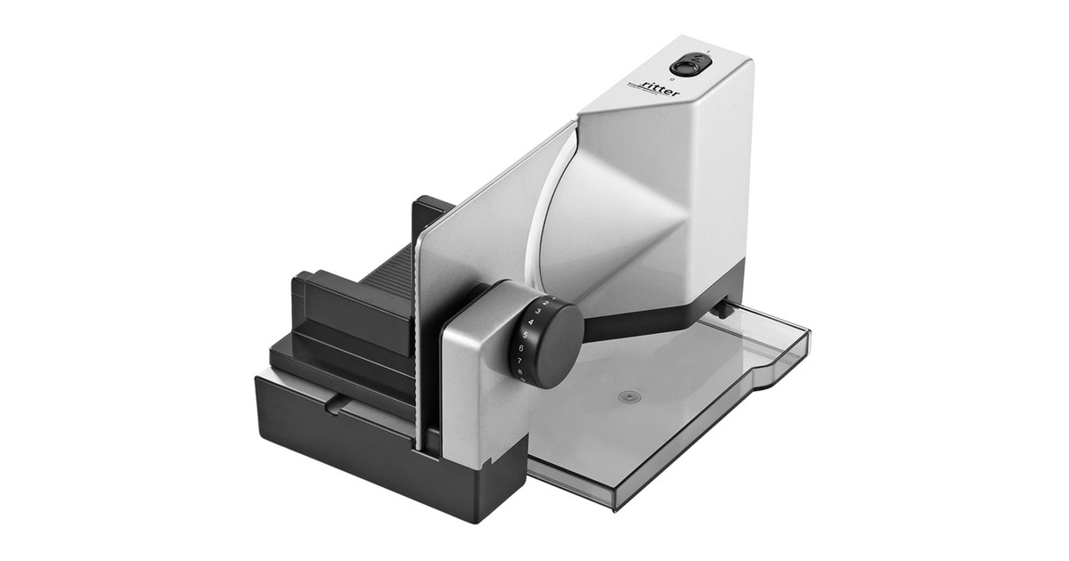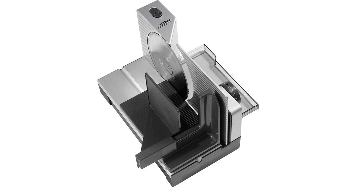 Dauerbetrieb, Momentbetrieb, Schnittstärke stufenlos einstellbar, Schneidgut-Auffangschale, abnehmbarer Schlitten |