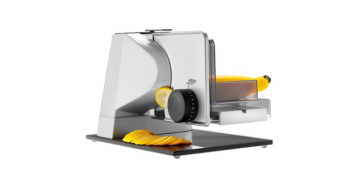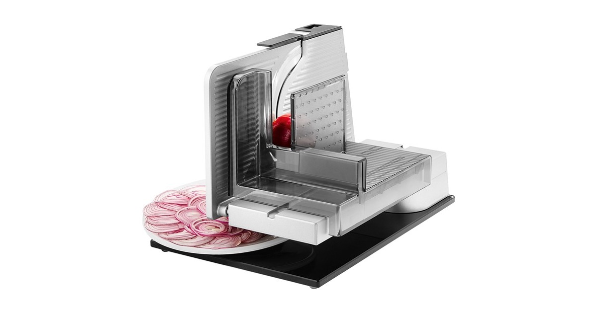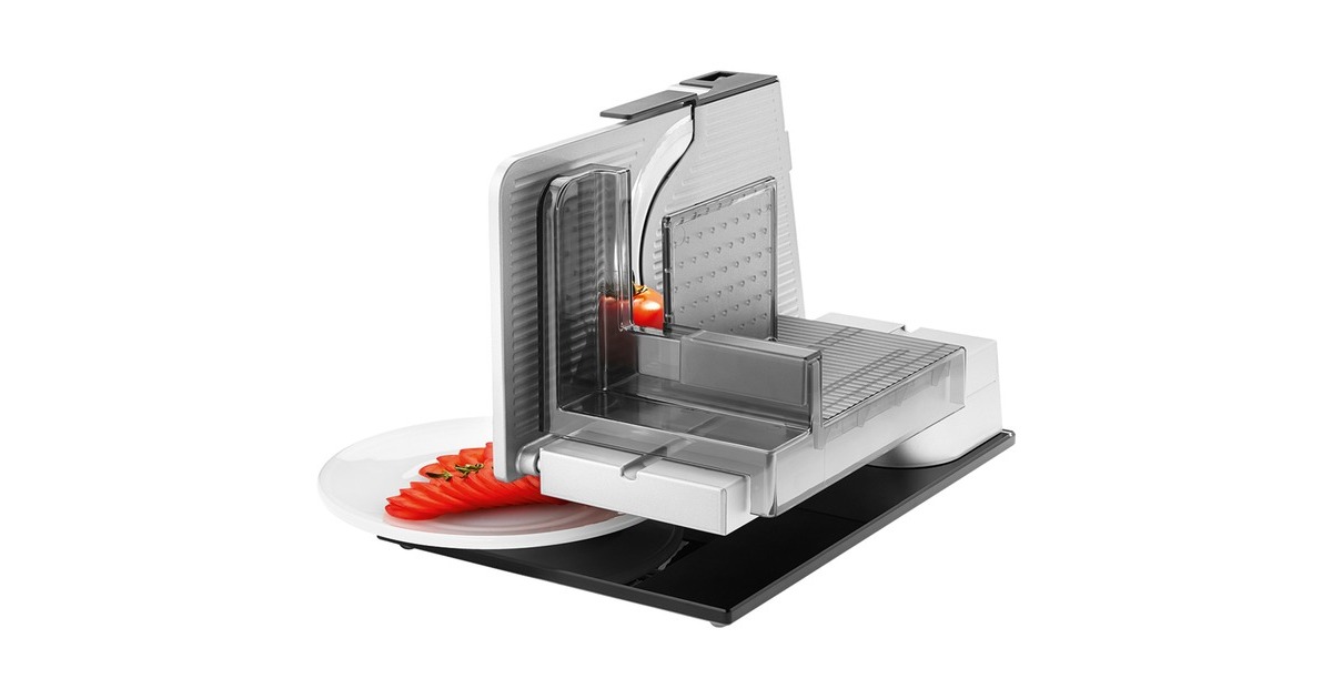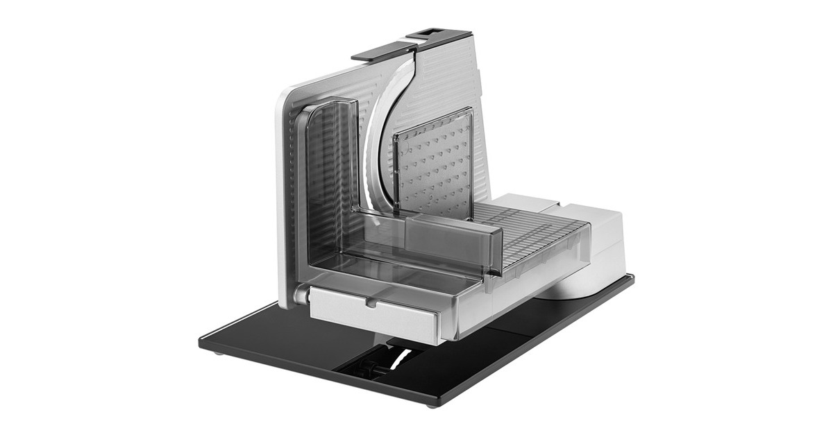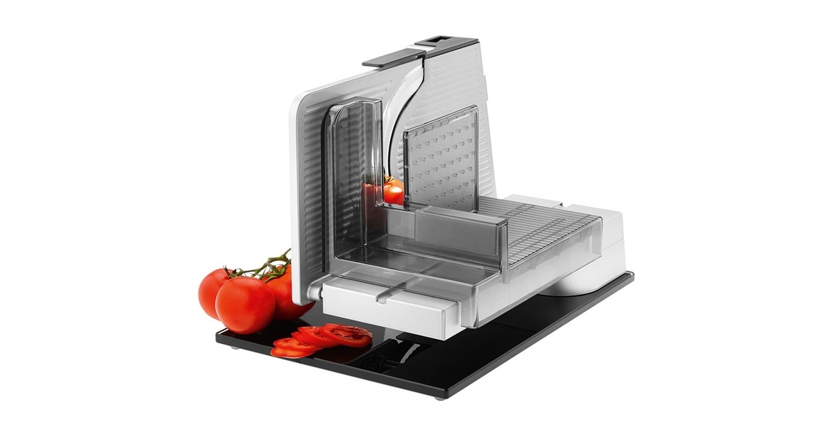 Der Vollmetall-Allesschneider sono⁵ aus der Serie premium ist ein richtiges Multitalent. Durch den Einsatz einer edlen Bodenplatte aus Glas überzeugt der Allesschneider zudem mit einem stilvollen Design. Die Bodenplatte besteht aus einem hochwertigen, bruchsicheren Sicherheitsglas und verleiht dem Allesschneider eine exklusive Anmutung. Durch die freitragende Konstruktion ist es zum einen möglich, die aufgeschnittenen Scheiben direkt auf großen Tellern und Platten abzulegen und zum anderen das Gerät bequem und einfach zu reinigen. Die Vollmetall-Ausführung bietet zudem ein hohes Maß an Stabilität und Schneidleistung. Bei übergroßem Schneidgut kann der großflächige Schlitten abgenommen werden. Die stufenlose Schnittstärkeeinstellung reicht bis ca. 23 mm. Der Allesschneider sono⁵ wird durch einen kraftvollen sowie energiesparenden 65 Watt Eco-Motor angetrieben. Zusätzlich ist der Allesschneider sono⁵ mit einer Messerabdeckung und einem Sicherheits-Moment und Dauerschalter ausgestattet.Art.-Nr.: 1622309