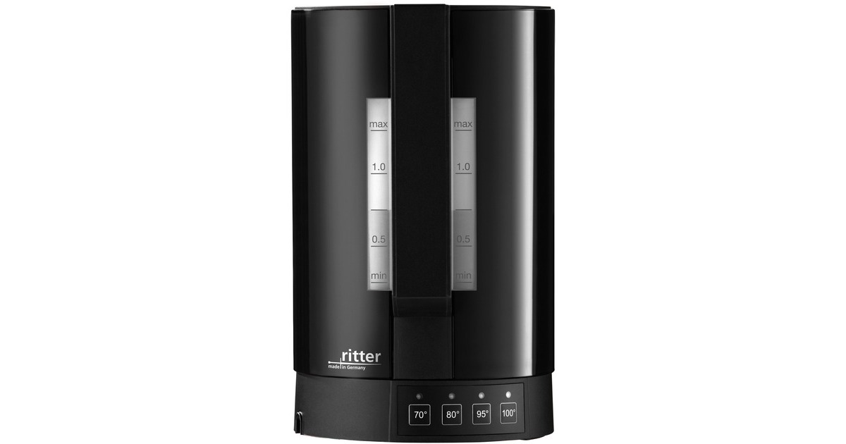 Die richtige Zubereitung und vor allem die korrekte Wassertemperatur sind entscheidend für den optimalen Genuss von Schwarztee, Grüntee oder Kaffee. Der Wasserkocher fontana 5 kann deshalb mehr als nur Wasser kochen, denn er erhitzt es nur genau auf die Temperatur, die jeweils gewünscht wird. Unnötiges Erhitzen und Abkühlen auf die benötigte Temperatur entfällt also und spart somit Strom. Das Wasser kann mit Hilfe von vier Temperatureinstellungen genau auf 70, 80, 95 oder 100 Grad Celsius erhitzt werden – ganz einfach per Tastendruck. Das wärmeisolierte Gehäuse bietet dabei gleich zwei Vorteile: zum einen schützt es vor unangenehmen Verbrennungen bei der Benutzung. Zum anderen kühlt das erhitzte Wasser durch das doppelwandige Gehäuse langsamer ab. Nicht nur durch Energieeffizienz überzeugt fontana 5, sondern im besonderen Maße auch durch seine Benutzerfreundlichkeit: Egal ob Links- oder Rechtshänder – mit der beidseitigen Wasserstandsanzeige kann die Füllmenge jederzeit problemlos abgelesen werden ohne diese mit der Hand zu verdecken. Durch den besonders weit zu öffnenden Deckel kann der Wasserkocher leicht befüllt und abschließend genauso einfach getrocknet oder gereinigt werden. Um lästigen und unansehnlichen Kalkablagerungen vorzubeugen, ist fontana 5 mit einem hochglanzpolierten Heizboden aus Edelstahl ausgestattet. Durch die glatte Oberfläche haftet Kalk erst gar nicht so schnell an und lässt sich leichter entfernen. Da die Wasserhärte lokal bedingt ist, ist der Wasserkocher mit zwei Metall-Kalkfiltern ausgestattet. Der grobporige Kalkfilter ist bei stark kalkhaltigem Wasser zu verwenden. Durch die größeren Poren bleibt die Wasserdurchlässigkeit trotz Kalkablagerungen für einen längeren Zeitraum bestehen. Der feinporige Kalkfilter sollte bei Wasser mit geringem Kalkgehalt verwendet werden, damit auch kleinste Kalkkrümel zurückgehalten werden. Die scharfe Ausgusskante sorgt dann für ein angenehmes Ausgießen ohne lästiges Nachtropfen. Auch in puncto Sicherheit erfüllt fontana 5 alle Anforderungen: So sind die Temperaturtasten mit wasserdichter Folie überzogen und der Wasserkocher schaltet sich automatisch nach dem Erreichen der eingestellten Temperatur ab. Er ist darüber hinaus mit einem Trockengeh- und Überhitzungsschutz ausgestattet. Zusätzlich sorgen ein Sicherheitsdeckel, der mit zwei Fingern zu öffnen ist und somit ein unbeabsichtigtes Öffnen verhindert, sowie die beleuchtete LED Anzeige für eine sichere Handhabung des Wasserkochers. fontana 5 bietet einen geringen Energieverbrauch, eine bedienungsfreundliche Handhabung und besteht aus umweltschonenden Materialien. Er überzeugt auch mit seiner Form und Farbwahl in klarer, zeitloser Bauhaus-Optik. Zusammen mit dem unvergleichbar schmalen Toaster volcano 5 und der energiesparenden Kaffeemaschine cafena 5 ist das farblich abgestimmte Frühstücksset komplett – natürlich "made in Germany".