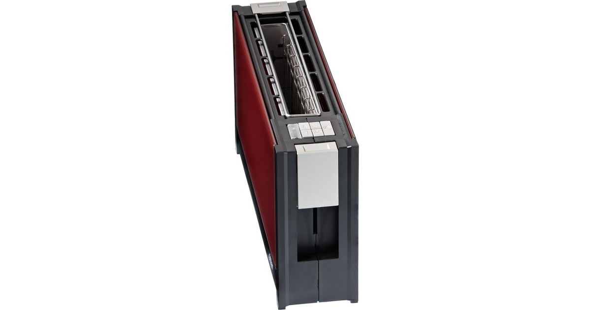 Mit nur knappen 9 cm Breite ist der elegante Langschlitztoaster volcano 5 unvergleichbar schmal und ein echter Hingucker in jeder Küche. Die edlen Glasfronten in rot verleihen dem Toaster zudem ein exklusives Äußeres. Hochwertige Materialien und eine perfekte Verarbeitung sorgen beim volcano 5 für eine hohe Lebensdauer. Mit volcano 5 können zwei Toastscheiben gleichzeitig geröstet werden, die durch eine Röstgutzentrierung gleichmäßig gebräunt werden. Ganz nach Geschmack kann der Röstgrad des Brotes in neun Bräunungsstufen eingestellt werden. Der eingestellte Röstgrad wird digital über LED’s angezeigt und bleibt durch eine Memoryfunktion beim nächsten Röstvorgang erhalten und muss somit nicht immer aufs Neue eingestellt werden – dies gilt auch für den Fall, dass der Toaster einmal vom Netz getrennt wird. Während des Röstvorgangs erlöschen die LED`s schrittweise mit Fortschreiten des Toastvorgangs, sodass die verbleibende Röstzeit leicht einschätzbar ist.