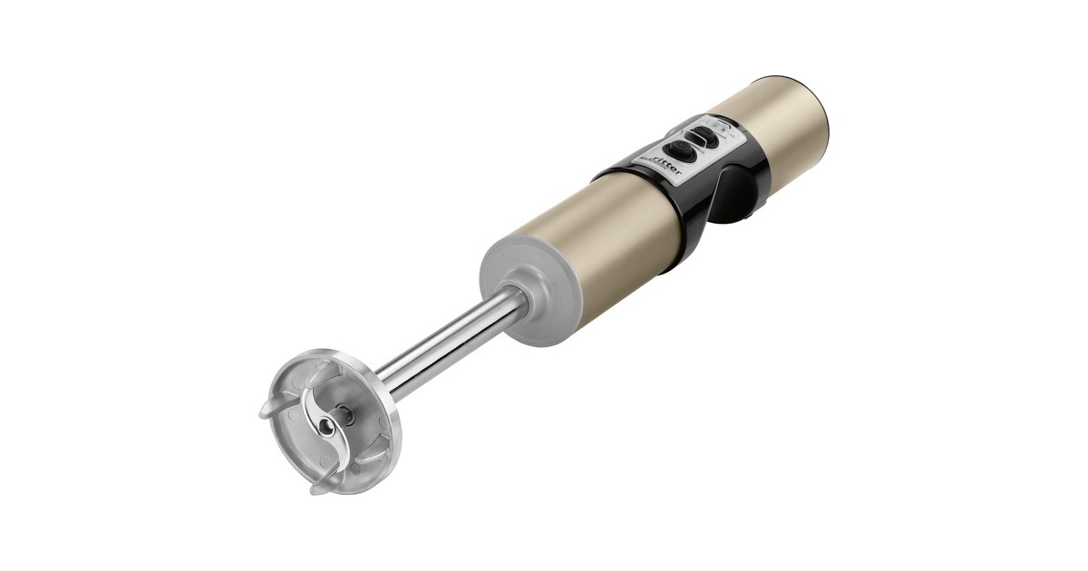 Der Stabmixer stilo7 Plus verfügt über eine hohe Materialqualität und besteht zum größten Teil aus stabilem Metall, während der Griff zugunsten angenehmer Ergonomie aus hochwertigem Kunststoff ist. Aufgrund des Akkubetriebs sorgt der kabellose Stabmixer für absolute Freiheit beim Kochen. Über eine LED-Anzeige kann der Ladestand des Akkus einfach abgelesen werden. Der Lithium-Ionen-Akku wird dank intelligenter Ladetechnik schonend und langsam aufgeladen ohne zu überladen. Der Ladevorgang endet automatisch, sobald der Akku voll ist. Diese Ladetechnik sorgt für eine lange Lebensdauer des Akkus. Auch das Thema Sicherheit kommt beim Stabmixer stilo7 Plus nicht zu kurz: Er verfügt über ein Sicherheits-2-Finger-Einschaltsystem. Damit ein versehentliches Anschalten verhindert wird, müssen Entsperr- und Einschalttaste gleichzeitig betätigt werden. Der Stabmixer läuft mit maximaler Drehzahl von ca. 12.000 Umdrehungen pro Minute an. Mithilfe des Durchschaltsystems können dann zwei weitere niedrigere Drehzahlstufen ausgewählt werden. Als Schutz vor Überlastung schaltet das Gerät beispielsweise bei Blockade des Messers oder Überhitzung automatisch ab. Vier verschiedene Edelstahl-Aufsätze - Universalmesser, Schlagscheibe, Rührscheibe und Schneidemesser - ermöglichen dem stilo7 Plus vielfältige Zubereitungsmöglichkeiten. Je nachdem, wie fein die jeweiligen Lebensmittel bearbeitet werden sollen. Mit dem Universalmesser, dem Standard-Aufsatz lassen sich die meisten Lebensmittel Pürieren. Die Schlagscheibe dient dem luftigen Aufschlagen von Lebensmitteln, die Rührscheibe dem Rühren von dickcremigen Speisen und zum Schneiden von Fleisch und faserigem Obst und Gemüse eignet sich das Schneidemesser. Die beiden Mixbecher, einer aus Edelstahl und einer aus Kunststoff; sind durch ihre schmale, hohe Form optimal für die Verarbeitung geeignet.Art.-Nr.: 1834773