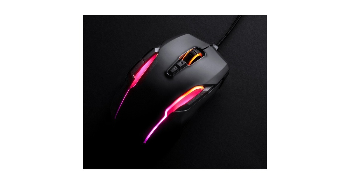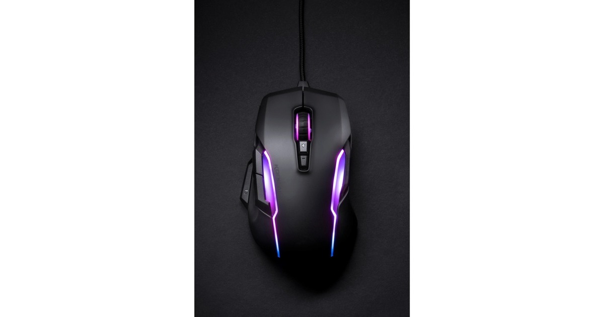 AIMO Beleuchtung – RGBA-Hintergrundbeleuchtung und LED-Lichteffekte | 5 unabhängig konfigurierbare Beleuchtungszonen | Easy-Shift[+]-Technologie für 24 mögliche Funktionen | Griffige, langlebige und schmutzabweisende Beschichtung | Angle Snapping: an/aus | Mausbeschleunigung: nein | 1 ms Verzögerung |