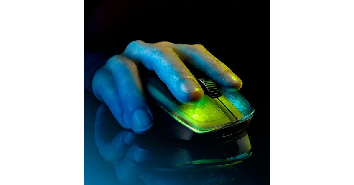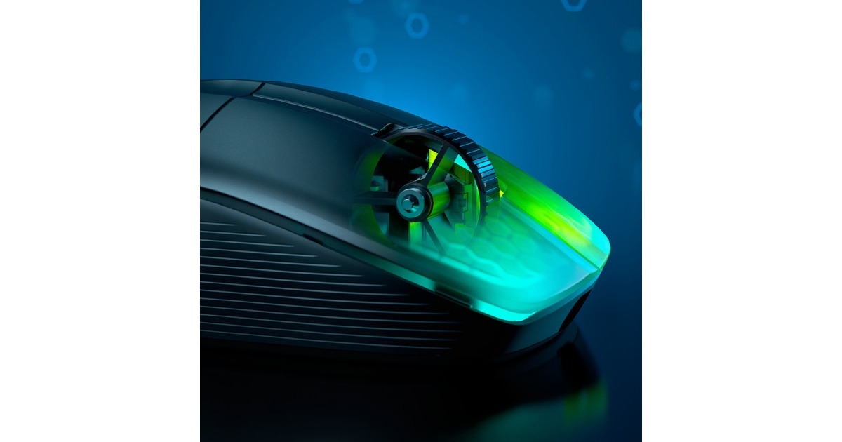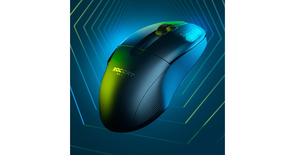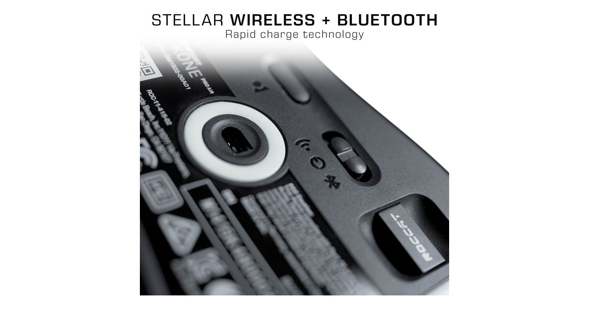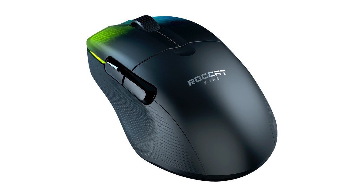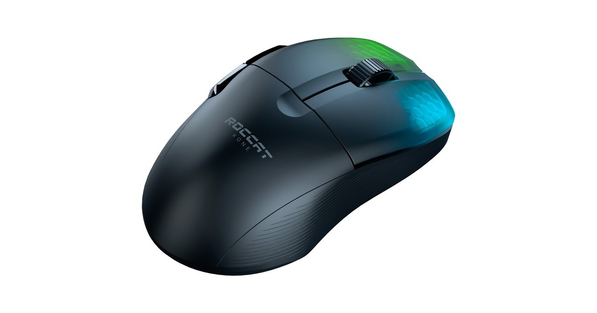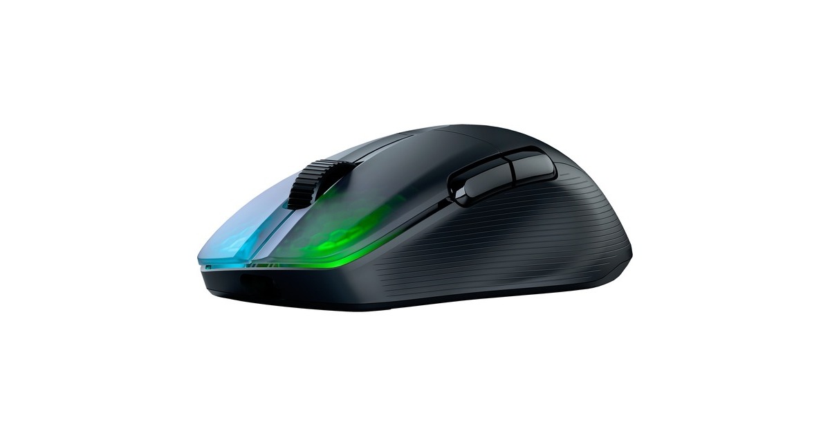 Perfektionierte Ergonomie in charakteristischem Shape | Extrem leichtes, transluzentes Roccat Bionic Shell (75 g) | Stellar Wireless + Bluetooth für über 100 Stunden Akku-Power plus Rapid Charge Schnelladefunktion | Titan Wheel Pro | Einstellbare Lift-off-Distanz | Integrierter Speicher | Roccat AIMO |