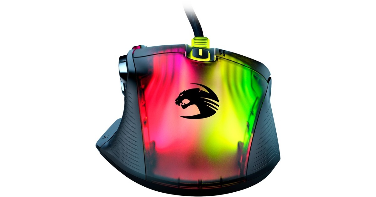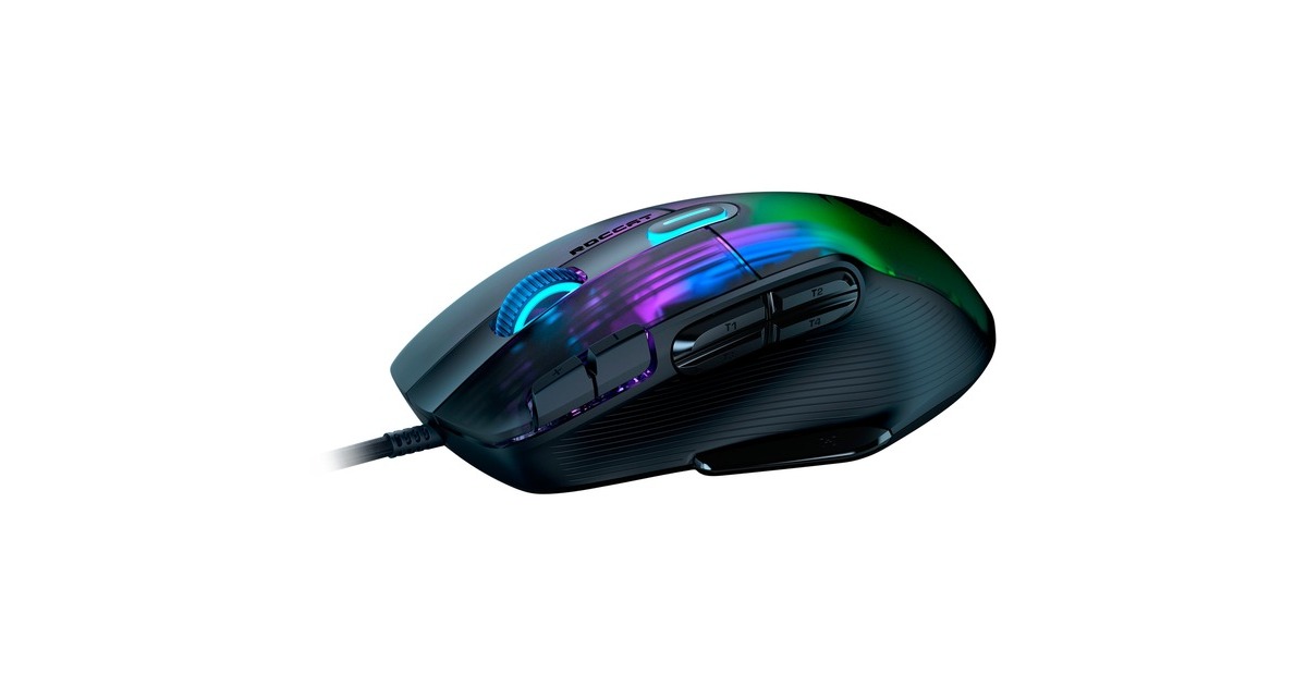 Legendäres Kone-Design mit 15 Tasten plus Easy-Shift[+] Daumentaste (programmierbare Tastenbelegungen: 29), Krystal 4D-Mausrad, Multi-Button-Thumb-Area mit 5 Daumentasten, einstellbare Lift-off-Distanz, integrierter Speicher, einstellbare Auflösung von 50 bis 19.000 dpi, AIMO 3D-RGB-Beleuchtung mit 22 LEDs und 8 Lightguides, Griffbreite: 59 mm, PhantomFlex-Kabel, NVIDIA Reflex kompatibel |