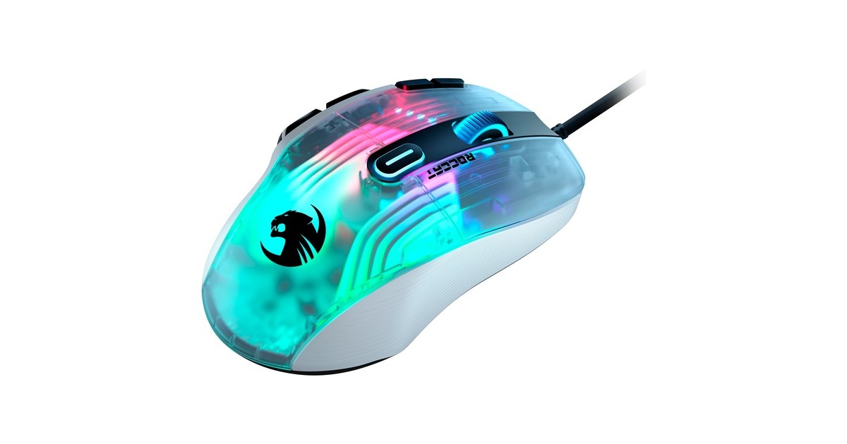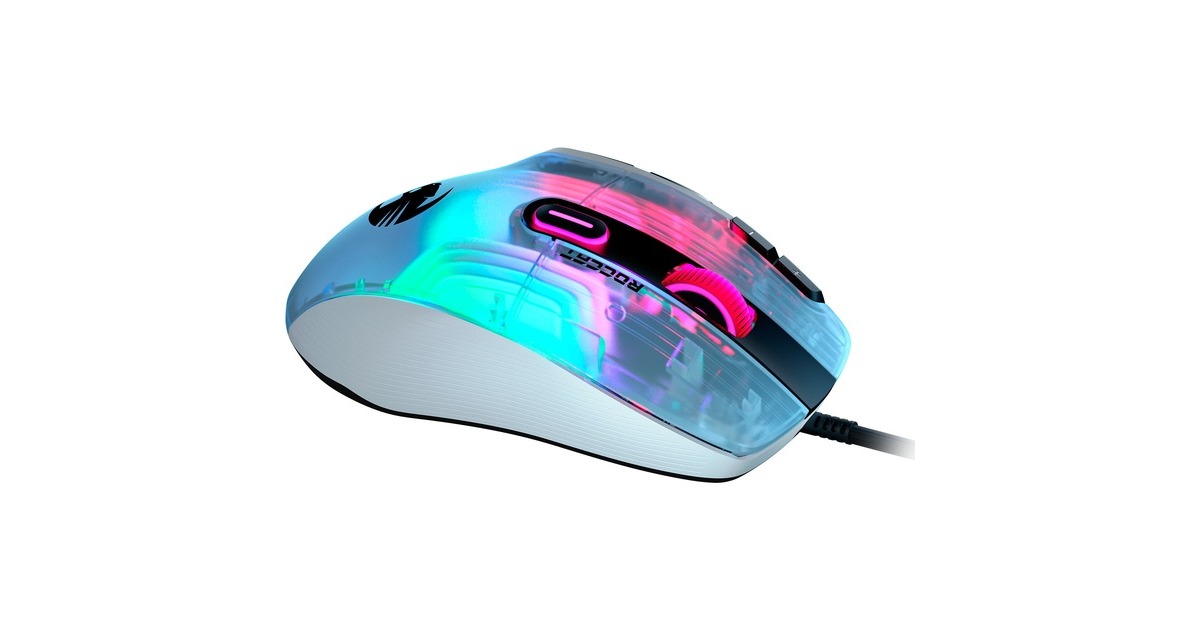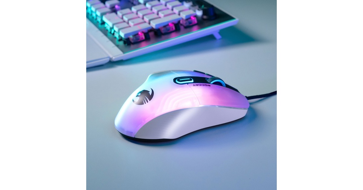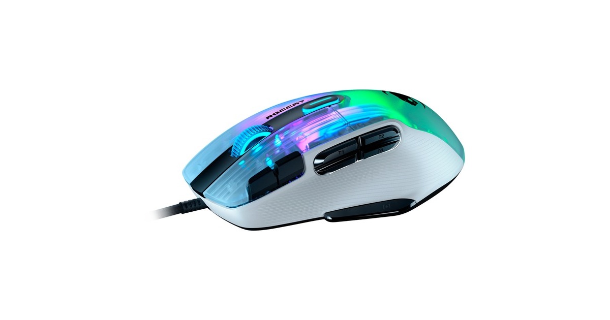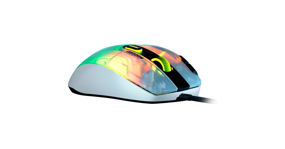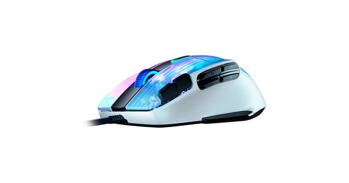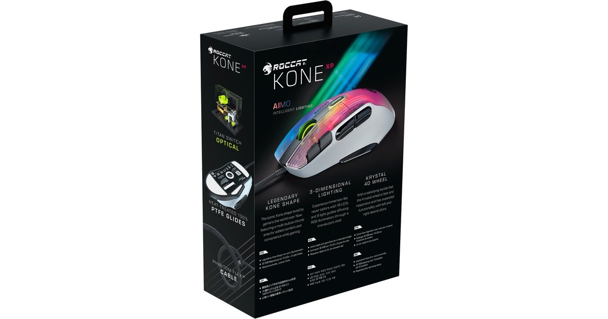 Die Kone XP mit 3D-Beleuchtung ist die neueste Gaming-Maus von Roccat mit der hervorragenden Ergonomie des legendären, jetzt noch weiter verfeinerten Kone-Designs. Als geistiger Nachfolger der außerordentlich beliebten Kone AIMO Remastered wurde die Kone XP in jeder Hinsicht verbessert. Das durchscheinende Gehäuse der Kone XP bietet ein Lichtspektakel aus 22 LEDs und acht Lightguides, was eine noch nie dagewesene Tiefe und Immersion erzeugt. Sie verfügt über 15 Tasten, die mithilfe der Roccat Easy-Shift[+]-Technologie doppelt belegt werden können, was 29 Tastenfunktionen ermöglicht. Ideal für MMO- und Echtzeitstrategie-Spieler, die schnellen Zugriff auf verschiedenste Eingabebefehle benötigen, oder Gamer, die sich maximale Anpassungsfähigkeit wünschen. Das Krystal 4D-Mausrad der Kone XP lässt sich nach links und rechts kippen und schafft so zusätzlich zur Standardfunktionalität des vertikalen Klickens und Scrollens weitere Eingabemöglichkeiten – und das alles mit einem unverwechselbaren taktilen Bediengefühl. Aus durchscheinendem Material hergestellt, setzt das Krystal 4D-Mausrad die RGB-Beleuchtung zudem auf besondere Weise in Szene. Der Roccat Titan Optical Schalter ist schnell, robust und zuverlässig und bietet ein angenehm taktiles Klickgefühl. Keine Probleme beim Doppelklicken und keinerlei Eingewöhnungszeit. Weiterhin kommt bei der Kone XP der hochmoderne optische Owl-Eye-Sensor mit 19.000 dpi zum Einsatz, der mit hoher Reaktionsfähigkeit und Präzision brilliert. Das Roccat PhantomFlex-Kabel bietet eine fast kabellose Spielerfahrung ohne Reibungswiderstand oder Verheddern. Die Basis dafür sind die hitzehandelten Premium-Mausfüße aus reinem PTFE, deren grandiose Gleiteigenschaften von Anfang an begeistern.Art.-Nr.: 1821732