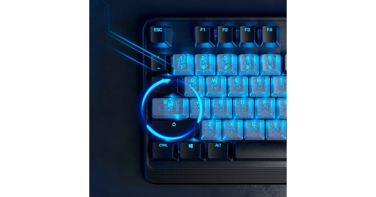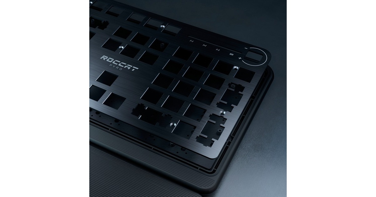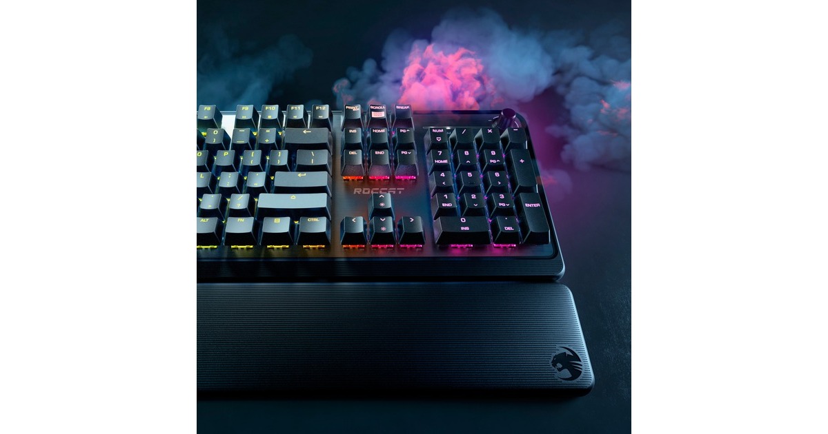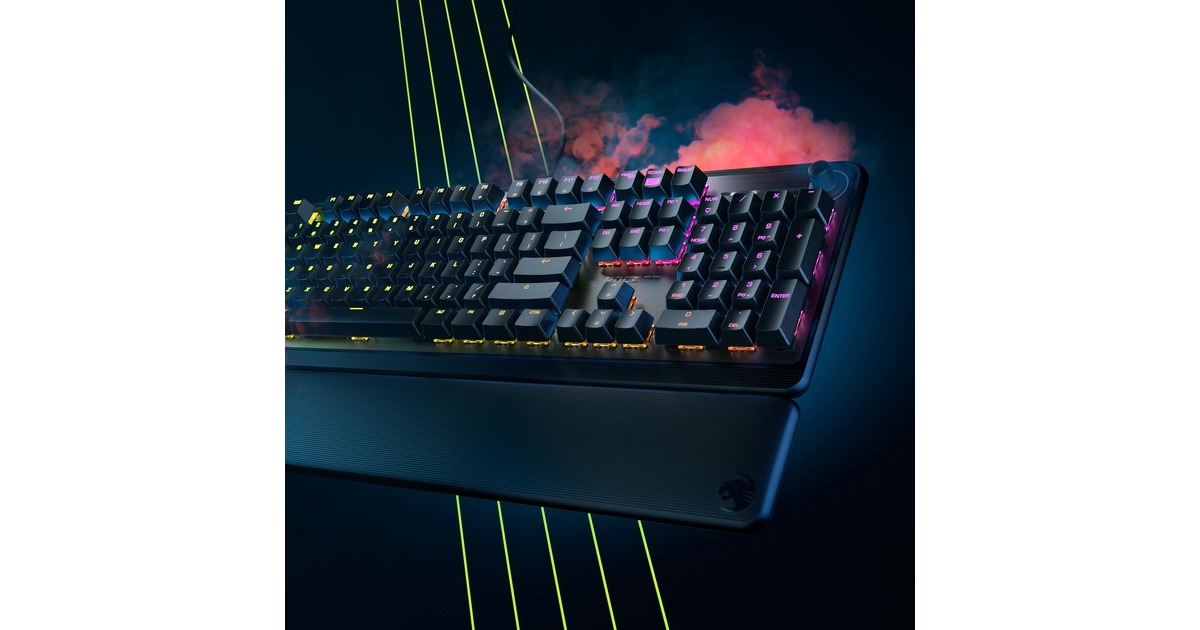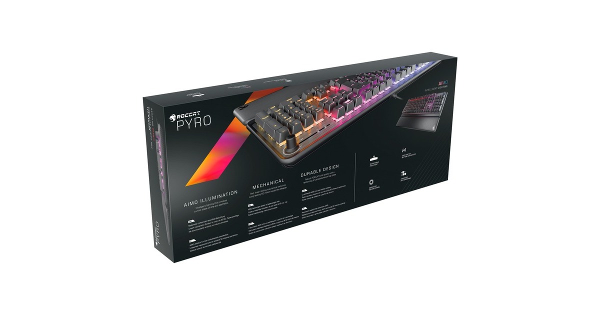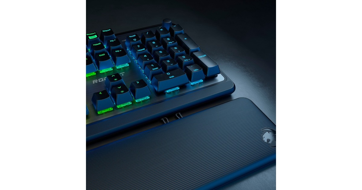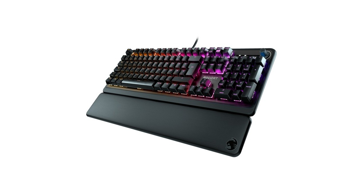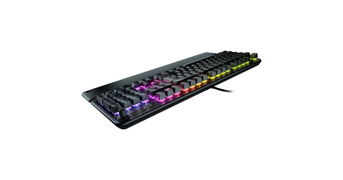 Oberseite aus gebürstetem Aluminium | Doppelte Tastenbelegung mit ROCCAT Easy-Shift[+] | Mixer-Style-Lautstärkereglung | 5 integrierte Mediensteuertasten | Abnehmbare Handballenauflage | AIMO Lichtsystem |