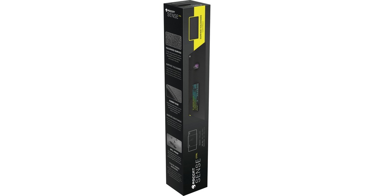 Das Roccat Sense CTRL Gaming-Mauspad begeistert mit seiner einzigartigen vulkanisierten Oberfläche. Durch die Wärmebehandlung des Gewebes wurde eine stabile und gleichmäßige Spielfläche erzeugt, die sich immer gleich anfühlt und gleich reagiert – egal, in welche Richtung man die Maus bewegt, man behältt die absolute Kontrolle. Perfekt für Gamer auf der Suche nach Präzision! Die Vulkanisierung macht das Sense Ctrl außerdem wasserfest, was es vor verschütteten Flüssigkeiten schützt und das Reinigen erleichtert. Die besonders edle, extradicke Unterseite aus Gummi sichert den Spielkomfort bei langen Gaming-Sessions und hält das Sense Ctrl immer sicher an Ort und Stelle. Die XXL-Größe (900 x 420 x 3 mm) ist für Gamer, die sich die größtmögliche Spielfläche wünschen und sowohl ihre Tastatur als auch ihre Maus komfortabel auf dem Mauspad platzieren möchten.Art.-Nr.: 1784606