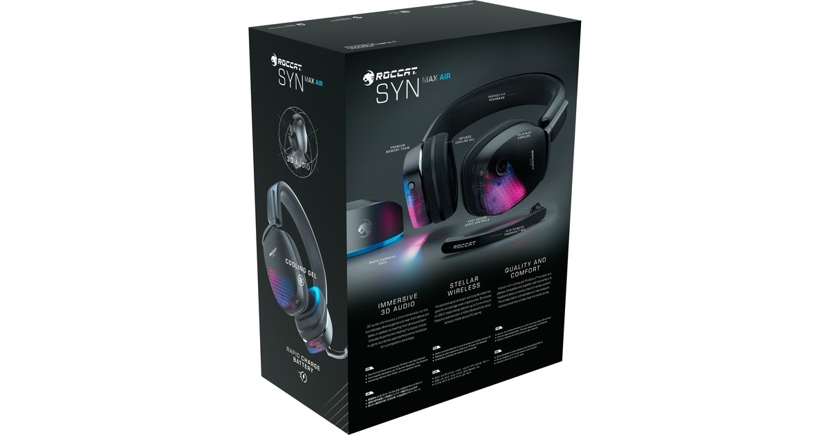 Das Syn Max Air ist ein hochwertiges Premium-Headset und wurde mit der Liebe zum Detail entwickelt. Das Syn Mac Air bietet immersives 3D-Audio und sprengt die Grenzen des gewohnten 7.1-Sounds damit Gamer auch Geräusche von oben und unten wahrnehmen - produziert von 50 mm Premiumtreibern. Dank der ROCCAT Stellar Wireless plus Bluetooth-Technologie können Gamer PC und Mobilgeräte gleichzeitig verbunden werden. Mit herausragender Signalstärke, ermöglichen langlebige Akkus 16 Stunden Dauerbetrieb mit nur einer Aufladung. In nur 15 Minuten können mit der Rapid Charge USB-C-Schnellladefunktion fünf weitere Stunden Akkulaufzeit erreicht werden. Das Syn Max Air sorgt außerdem mit Polstern aus kühlendem Gel und Memory-Foam plus einem atmungsaktiven Textilbezug für dauerhaften Tragekomfort.Art.-Nr.: 1848175