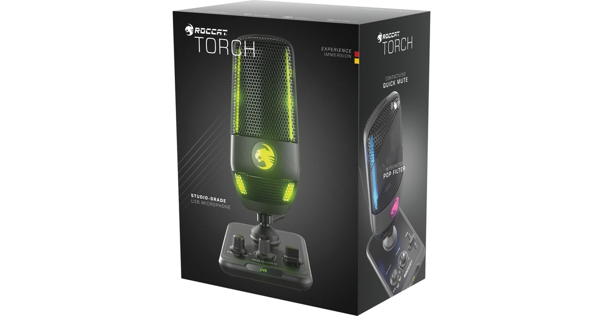 Das Roccat Torch ist ein hochwertiges USB-Mikrofon in Studioqualität. Entwickelt für ambitionierte Creator und Gamer gleichermaßen, katapultiert das Torch den Nutzer und Content auf das nächste Level. Mit 24-Bit-Soundqualität, Doppelkondensator-Design, latenzfreiem Mikrofon-Monitoring und einem integrierten Pop-Filter klingt die Stimme immer einwandfrei und klar. Drei Richtcharakteristika - Cardioid, Stereo und der exklusive "Whisper"-Modus ermöglichen es, in allen Umgebungen Content zu erstellen, zu spielen und zu senden. Das blitzschnelle, gestengesteuerte Contactless Quick Mute ermöglicht sofortige Kontrolle, wenn es darauf ankommt. Kompatibel mit einer großen Auswahl an Mikrofonarmen und Shock-Mounts, passt sich das Torch jedem Setup an.