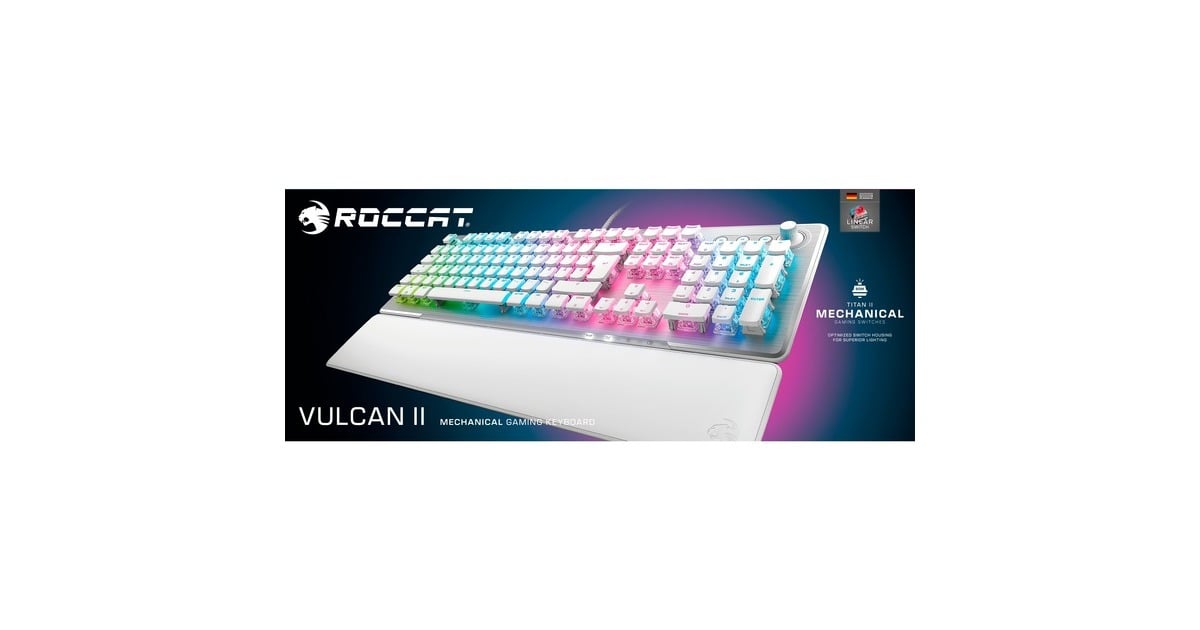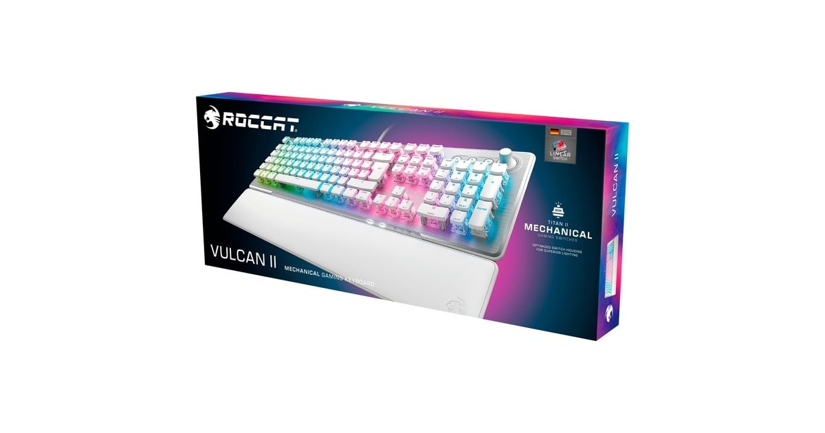 Die Vulcan II baut auf dem Erfolg der preisgekrönten Roccat Vulcan Serie auf und setzt mit den mechanischen Roccat Titan II Schaltern einen neuen Standard in Sachen Gaming-Performance. Die Roccat Titan II Schalter wurden mit einem transparenten Gehäuse für ein beeindruckendes Beleuchtungserlebnis, einer verlängerten Lebensdauer von mehr als 80 Millionen Anschlägen und Cross Stems für die Kompatibilität mit Tastenkappen von Drittanbietern zum Anpassen des Looks optimiert. Für einen zusätzlichen Funktionsvorteil kann man im Spielmodus auf die Easy-Shift[+]-Funktionsebene zugreifen und eine zweite Funktionsebene freischalten, die mit nahezu unbegrenzten Optionen programmiert werden kann. Die Vulcan II verfügt über einen kompletten Satz von Medientasten und einen Lautstärkeregler mit Stummschaltung, mit dem sich Medien steuern lassen, ohne das Spiel zu unterbrechen. Außerdem sorgen vollständiges n-Key-Rollover und Anti-Ghosting dafür, dass jeder einzelne Tastendruck und jede Tastenkombination immer wie vorgesehen registriert werden. Die Vulcan II verfügt zudem über einzigartige ikonische Elemente, wie flache Tastenkappen, die abnehmbare gepolsterte Handballenauflage, die robuste Aluminiumrückwand und die AIMO-Beleuchtungstechnologie, die sofort nach dem Auspacken leuchtende RGB-Lichteffekte erzeugt und mit anderen kompatiblen AIMO-fähigen Produkten synchronisiert werden kann. Bis zu vier Profile lassen sich mit benutzerdefinierter Beleuchtung, Tastenbelegung und mehr direkt auf der Tastatur speichern.Art.-Nr.: 100002756