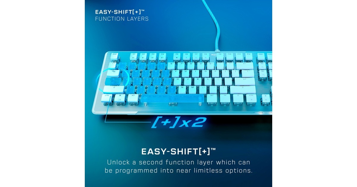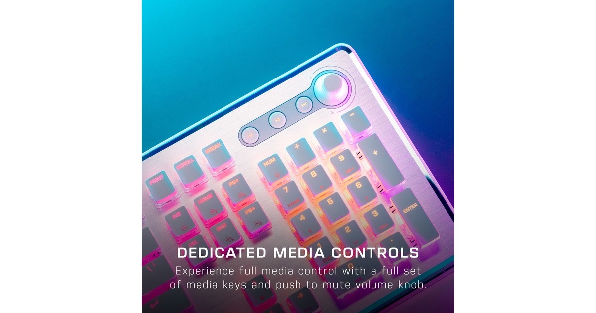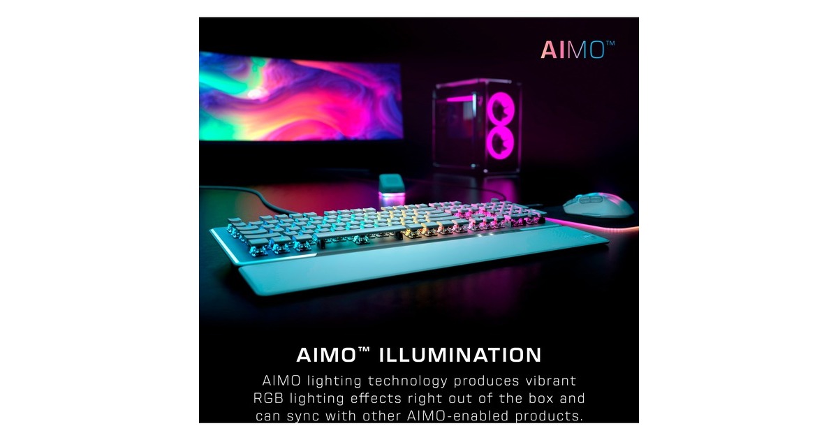 | Besonderheiten | Easy-Shift[+] Tasten-Duplikationstechnologie, Lautstärkeregler mit Stummschaltungsfunktion, Aluminium-Oberplatte, integrierter Speicher für bis zu 4 Nutzerprofile, AIMO-RGB-Beleuchtung |