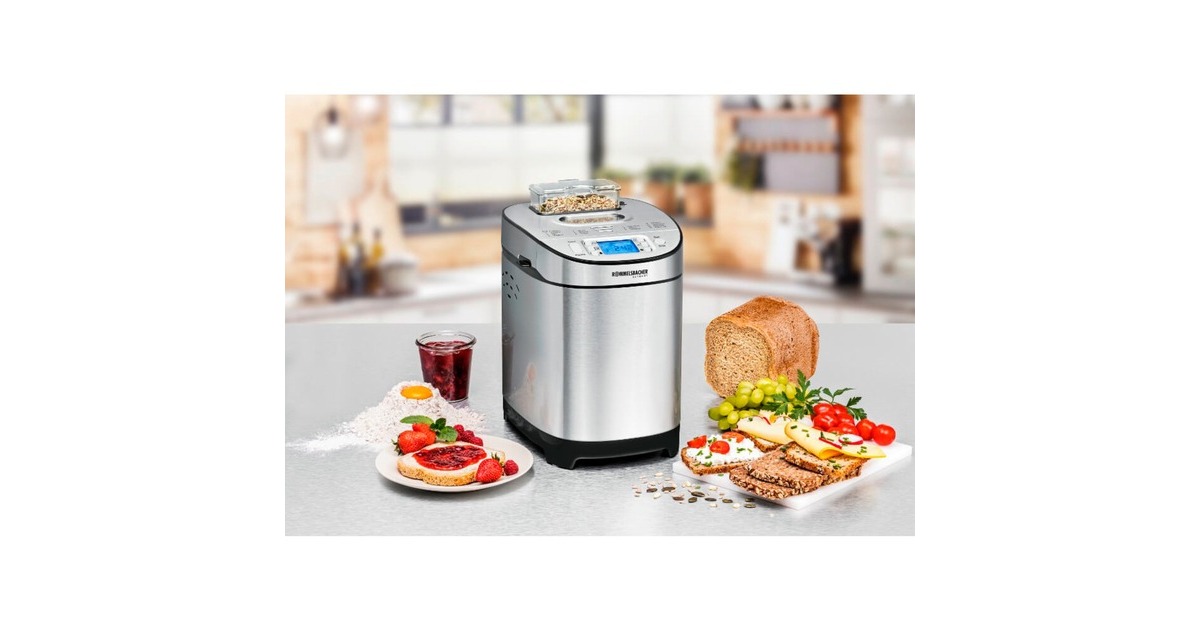 Der Brotbackautomat BA 550 von Rommelsbacher eignet sich ideal, um selbstgebackenes Brot nach individuellen Rezepten herzustellen. Die Zutaten können selbst ausgewählt werden, auch glutenfreie Rezepte sind möglich. Insgesamt stehen 12 Programme plus 1 frei programmierbares Programm zur Verfügung, wodurch die unterschiedlichsten Brotsorten gebacken werden können. Man hat die Wahl zwischen zwei Brotgrößen und auch der Bräunungsgrad kann individuell eingestellt werden. Auf Knopfdruck lässt sich das Zutatenfach programmieren, Nüsse, Körner und sonstige Beigaben werden automatisch und zur richtigen Zeit zugegeben. Weitere Programme zum Rühren und Kneten von Teig, zum Backen von Kuchen und zur Herstellung von Konfitüre runden die Vielfalt der Anwendungsmöglichkeiten ab. Nach Ablauf des gewählten Programmes schaltet der Brotbackautomat automatisch für 60 Minuten in die Warmhaltefunktion. Das Gerät lässt sich bis zu 13 Stunden im Voraus programmieren, so hat man zur gewünschten Zeit perfekt gebackenes Brot. Die herausnehmbare Backform lässt sich dank der hochwertigen 3-Lagen Antihaftbeschichtung mühelos reinigen. Der BA 550 eignet sich für alle, die Wert auf eine gesunde und individuelle Ernährung legen und Lebensmittel in Bio-Qualität zuhause herstellen möchten.Art.-Nr.: 1518358