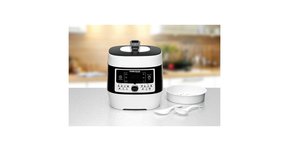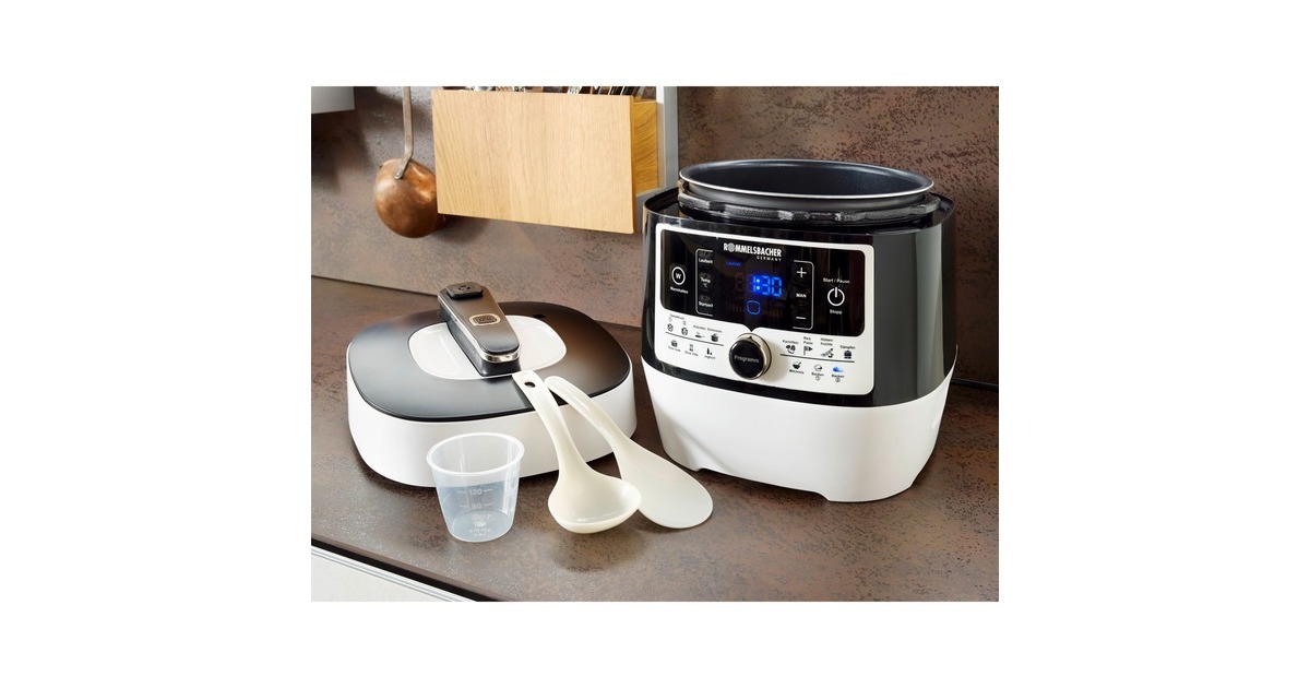 Kochen unter Dampfdruck ist aus der traditionellen Küche nicht wegzudenken. Der digitale Dampfdruck- & Multikocher MD 1000 macht diese Zubereitungsart fit für das neue Jahrtausend. Zeit, Energie und Platz sparen: bis zu 9 Küchengeräte kann dieses Multitalent ersetzen. Mit ihm lässt sich hervorragend Kochen, Dämpfen, Braten, Schmoren, cremiger Milchreis und Joghurt zubereiten und sogar Brot backen. Auch für moderne Garmethoden wie ‚Sous Vide‘ und ‚Slow Cooking‘ ist er schnell einsatzbereit. Insgesamt stehen 14 Kochprogramme, mit und ohne Dampfdruck, zur Verfügung. Ob ohne, mit Normal- oder Soft-Dampfdruck - die Elektronik steuert den Kochvorgang vollautomatisch und sicher. Alle Programme können individuell angepasst werden auch manuelle Einstellungen sind möglich. Dieser ‘Hans Dampf‘ überzeugt in allen Bereichen durch nährstoffschonende Ergebnisse. Die Zubereitung spart bis zu 70 % an Zeit und 50 % an Energie gegenüber herkömmlichen Kochverfahren. Die Abschaltung erfolgt automatisch, der anschließende Warmhaltemodus hält das Gericht bis zu eine Stunde lang auf Temperatur. Hochwertige Materialien und eine durchdachte Konstruktion sorgen für hohe Bedienfreundlichkeit. Der herausnehmbare Kochtopf ist antihaftbeschichtet und leicht zu reinigen. Dank der kompakten Bauweise kann das Gerät nach der Nutzung sehr platzsparend aufbewahrt werden. Ein universelles Küchengerät, das man bald nicht mehr missen möchte.Art.-Nr.: 1519325