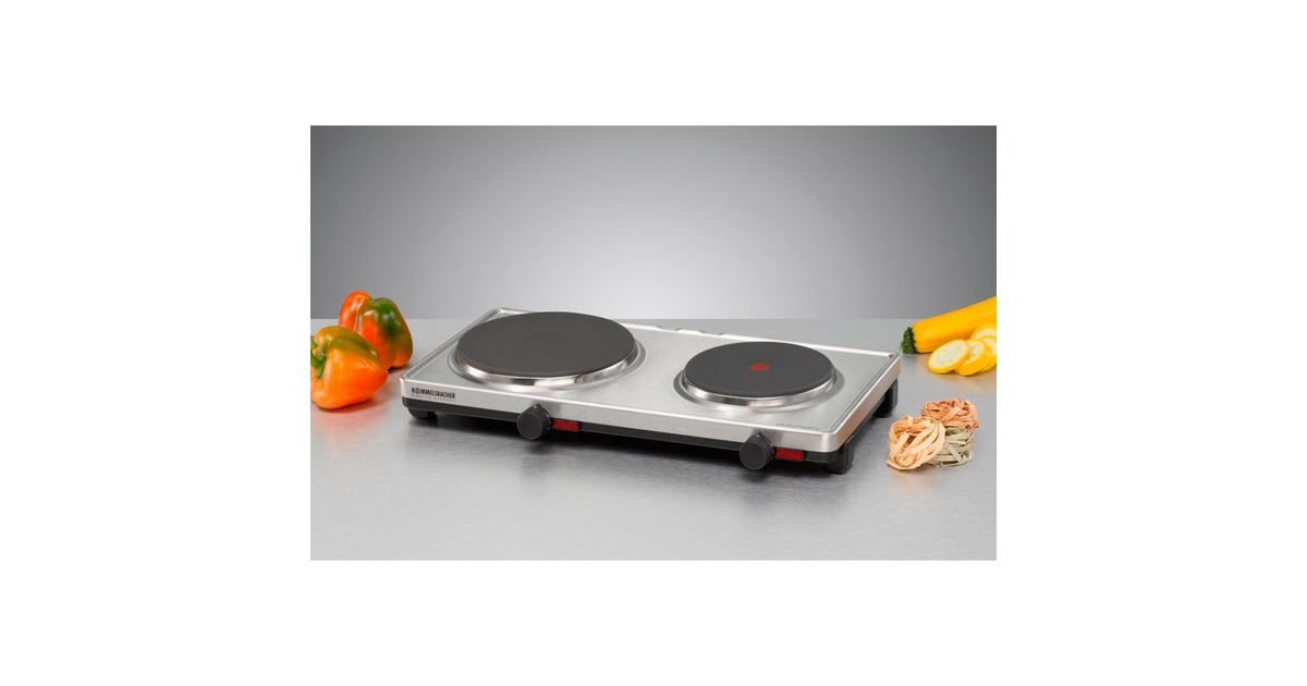 Die hochwertige Doppelkochplatte AK 3099/E mit einzigartigem 2-Schalen-Gehäuse und mit attraktiver Edelstahl-Oberfläche macht überall eine gute Figur - ob als Zusatzgerät in der Küche oder als vollwertige Kochstelle in Büro und Ferienwohnung. Das patentierte Thermostatsystem sorgt für höchste Temperaturgenauigkeit. Die Ankochautomatik, große, gut sichtbare Kontrolllampen und ein Überhitzungsschutz bieten hohen Bedienkomfort und Sicherheit. Die langlebigen Gussheizplatten sind für Kochgefäße aller Art bestens geeignet; die Ausführung als Blitzplatte (roter Punkt) sorgt für eine sehr kurze Aufheizzeit. Art.-Nr.: 1518357