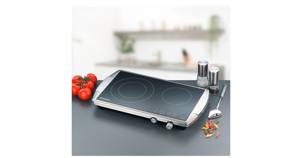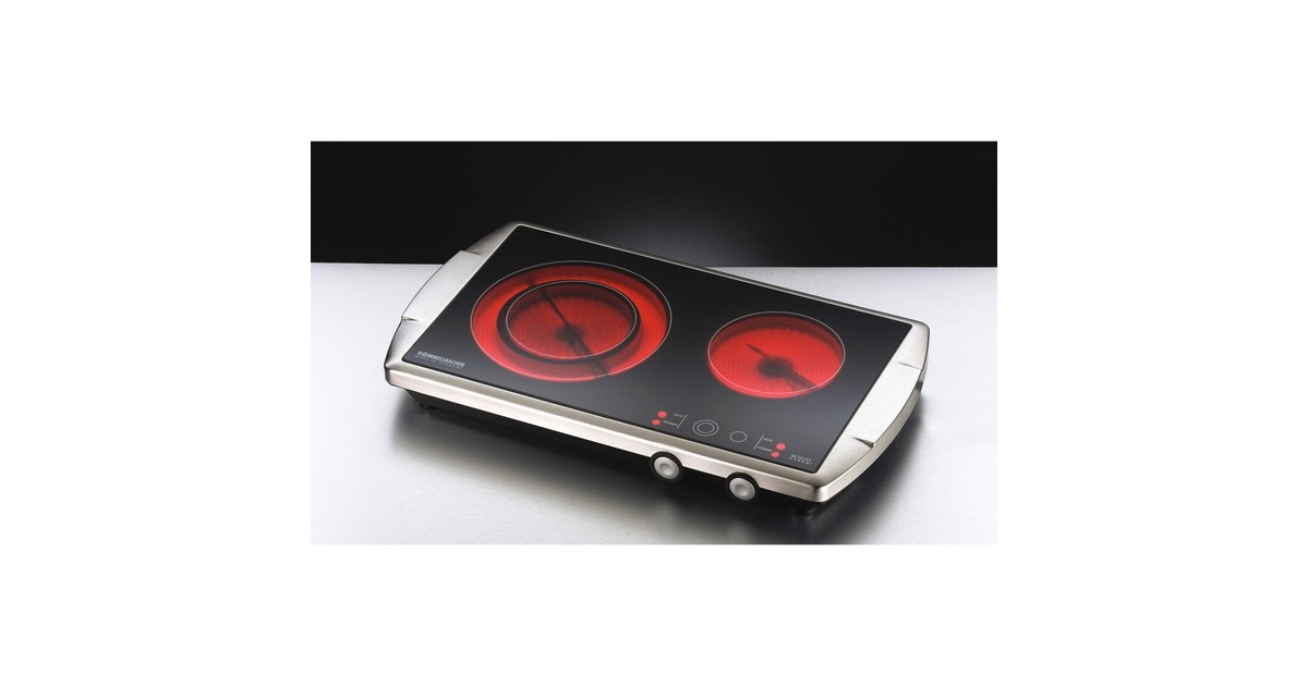 Es ist soweit, nun gibt es von Rommelsbacher auch die Doppelkochplatte CT 3400/E mit Glaskeramik Kochfeld in einem wunderschönen eleganten Edelstahl Gehäuse. Eine freistehende Doppelkochplatte, die alle Blicke auf sich zieht. Ideal als Zusatzgerät zum normalen Herd, perfekt für kleine Küchen, in Büros und Appartements und äußerst beliebt im Catering Bereich für Buffets und Kochvorführungen. Die Ausstattung erfüllt alle Ansprüche: die HiLight® Heizzonen werden stufenlos und stromsparend geregelt. Die Zweikreis Lösung erlaubt die Zuschaltung einer extra großen Zone mit 210 mm Ø, perfekt für große Kochgefäße. Die Knebel sind versenkbar und damit kindersicher. Zwei Kontrollampen und zwei Restwärmeanzeigen sind selbstverständlich. Überhitzungsschutz und Ankochautomatik sorgen für perfekte Sicherheit und besten Komfort.