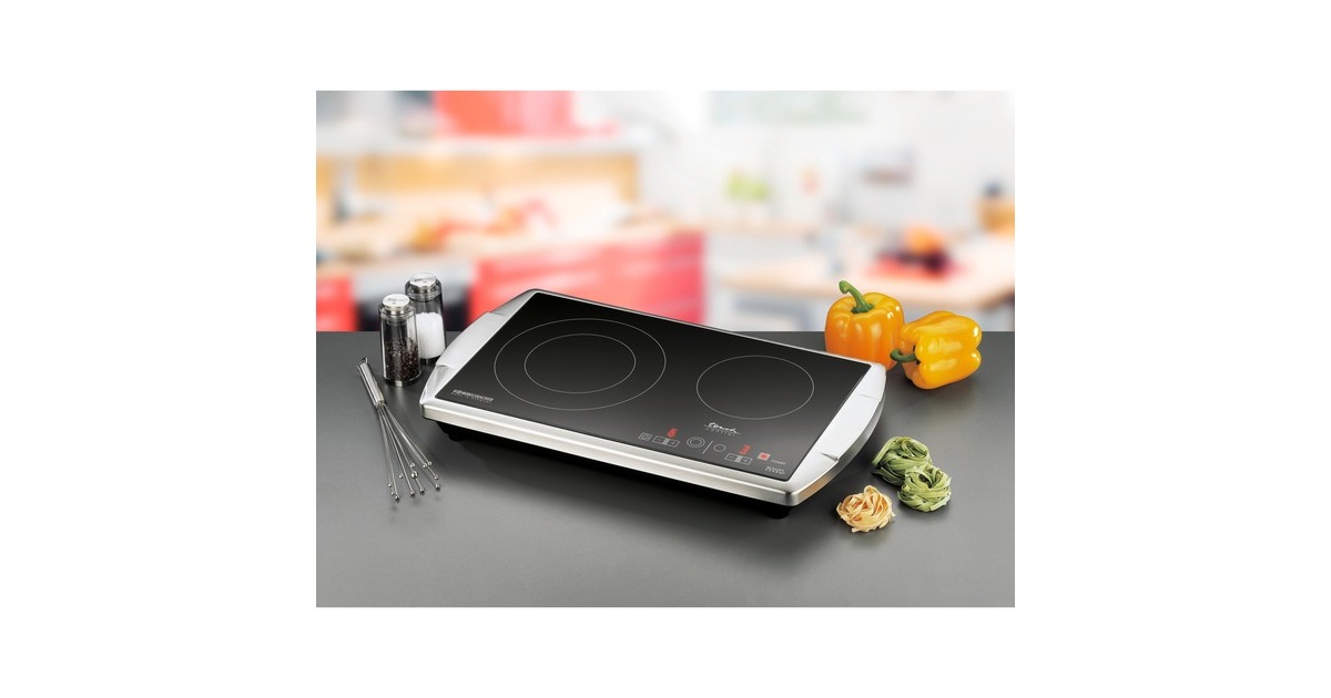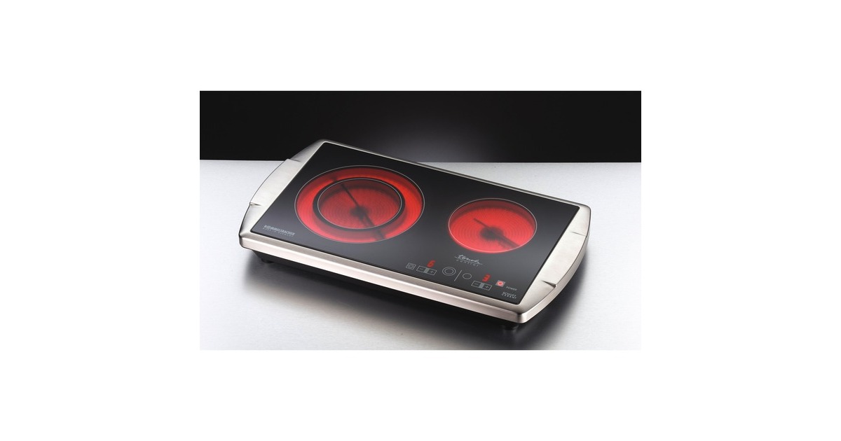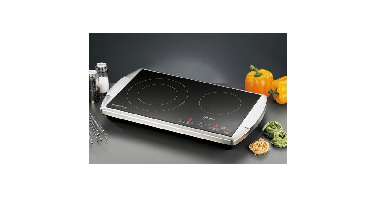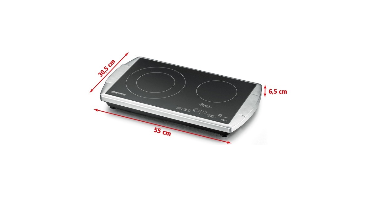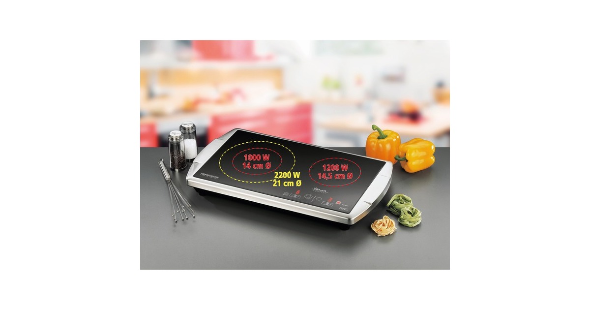 Die Zukunft hat begonnen: Nun gibt es von Rommelsbacher auch die Doppelkochplatte CT 3403/TC mit Glaskeramik Kochfeld in einem eleganten Edelstahl Gehäuse mit Softline Design. Die freistehende Kochplatte ist das Schmuckstück jeder Küche. Ideal als Zusatzgerät zum normalen Herd, perfekt für kleine Küchen, Büros und Appartements und äußerst beliebt im Catering Bereich für Buffets und Kochvorführungen. Die Ausstattung erfüllt alle Ansprüche: die HiLight® Heizzonen werden stromsparend über Touch Control in jeweils 9 Stufen geregelt. Die Zweikreis Lösung erlaubt die Zuschaltung einer extra großen Zone mit 210 mm Ø, perfekt für große Kochgefäße. Zwei Kontrolllampen und zwei Restwärmeanzeigen sind selbstverständlich. Überhitzungsschutz und Ankochautomatik sorgen für Sicherheit und besten Komfort.Art.-Nr.: 1518837