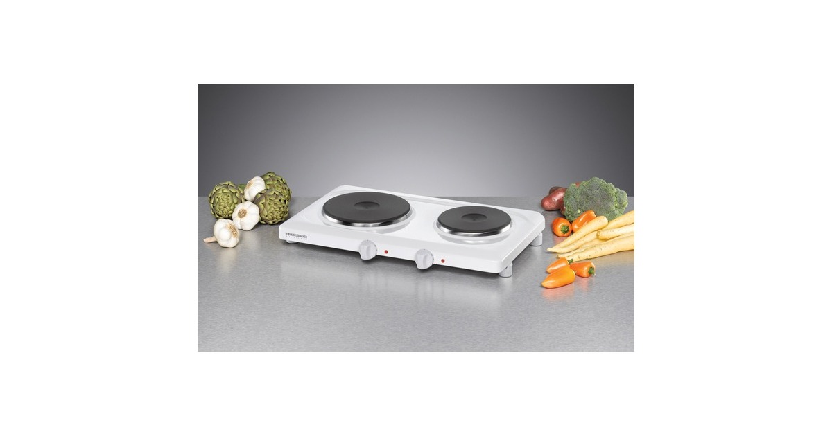Optimal als Zusatzgerät in der Küche, ideal für Büro oder Ferienwohnung, für Keller oder Laube. Diese Doppelkochtafel zeichnet sich durch ein sehr schönes Design, Funktionalität und hohen Bedienkomfort aus. Die langlebigen Original Gussheizplatten sind für jedes Kochgeschirr geeignet und sorgen für optimale Wärmeverteilung. Durch die Ankochautomatik heizen die Platten auf jeder Stufe mit voller Leistung auf. Das formschöne Gehäuse ist mit einer hochwertigen Feueremaillierung versehen und bleibt daher auch nach längerem Gebrauch dauerhaft weiß. Diese Kochtafel ist die richtige Wahl für preisbewusste und trotzdem anspruchsvolle Kunden.Art.-Nr.: 1519503