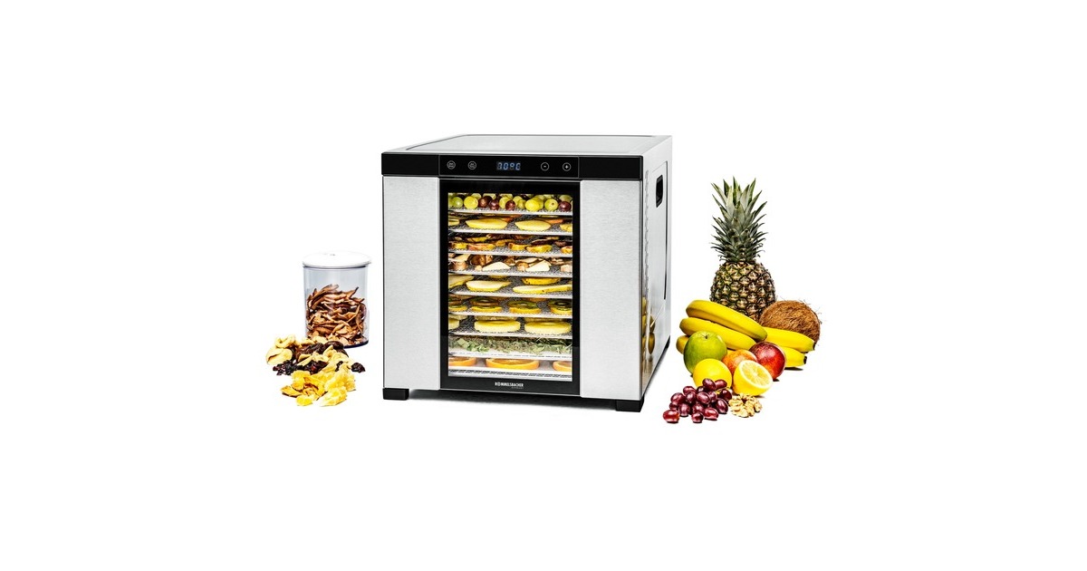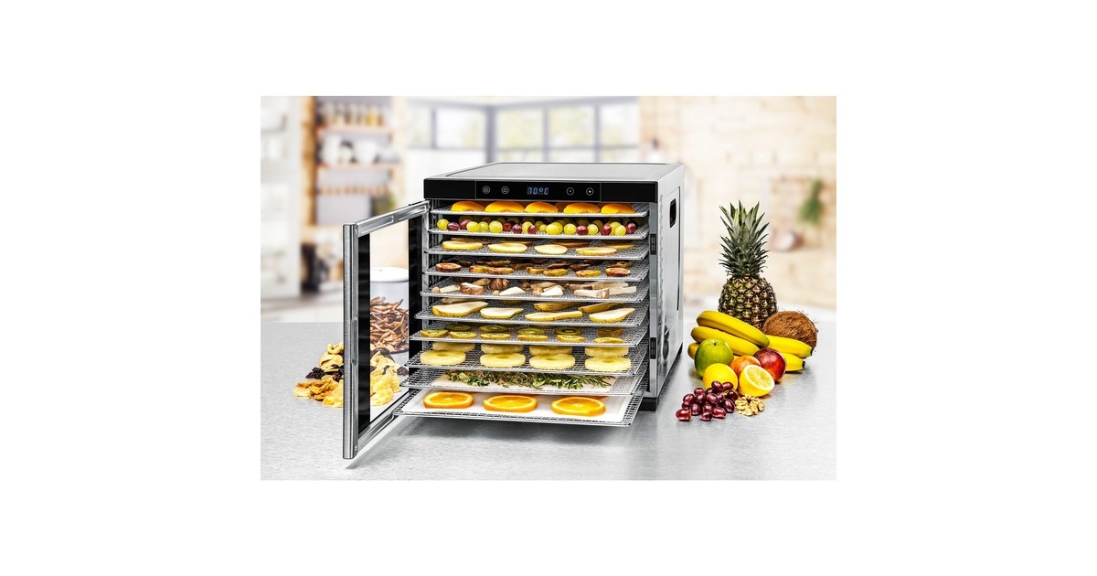 10 robuste Edelstahl Dörrtabletts (39,5 x 39,5 cm), 2 Dörrgitter und 2 Dörrmatten (BPA frei) |