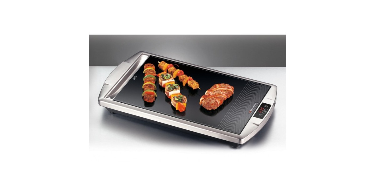 Grillträume werden wahr - mit dem Rommelsbacher Tischgrill CG 2308/TC lässt sich fettarm direkt auf der Glaskeramik grillen, eine elegante und außergewöhnliche Variante. Das formvollendete Design des hochwertigen Edelstahl-Gehäuses begeistert. Über Touch Control-Sensoren und LED-Display kann die Wunschtemperatur eingestellt werden. Die Grilltemperatur des Tischgrill CG 2308/TC wird permanent gemessen und angezeigt. Ist die Solltemperatur erreicht, ertönt ein Signalton. Die elektronische Temperatursteuerung ermöglicht scharfes Anbraten bis 380°C, aber auch Warmhalten oder sanftes Garen auf niedrigeren Temperaturen. So gelingen mit dem Tischgrill CG 2308/TC perfekte Steaks ebenso mühelos wie zart gegrillte Fischfilets, Vitamin schonend zubereitetes Gemüse oder leckere Pfannkuchen.Art.-Nr.: 1000290