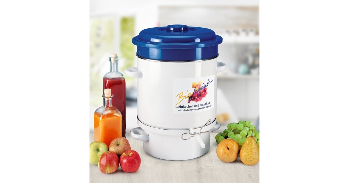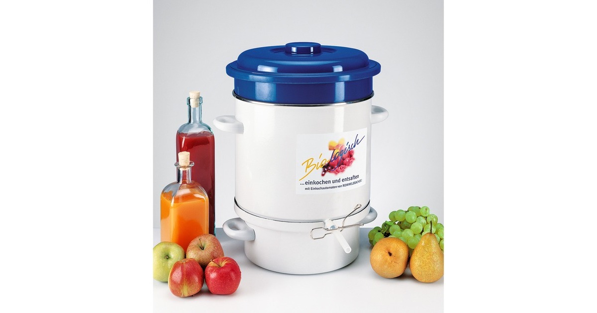 Mit dem Entsafter EE 1505 lassen sich gesunde, haltbare Säfte selbst herstellen, durch Dampfentsaften. Mit diesem bewährten Elektro Entsafter „Made in Germany“, ist das ganz einfach. Er besteht aus einem Komplettgerät mit eigenem Heizelement. Der robuste Topf zeichnet sich durch eine hochwertige, säurefeste 2-Schicht Emaillierung aus. Das Gerät muss nur mit Wasser und den Früchten befüllt und dann an eine Steckdose angeschlossen werden. Nach dem Entsaftungsvorgang kann der heiße Saft dann direkt über den Abfüllschlauch in Flaschen und Gefäße gefüllt werden. Ein Überhitzungs- und Trockengehschutz sowie die wärmeisolierenden Griffe sorgen für Sicherheit beim Gebrauch.Art.-Nr.: 1518907